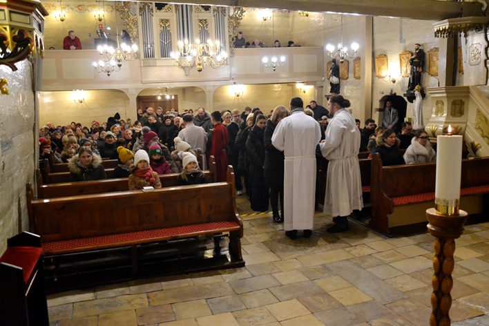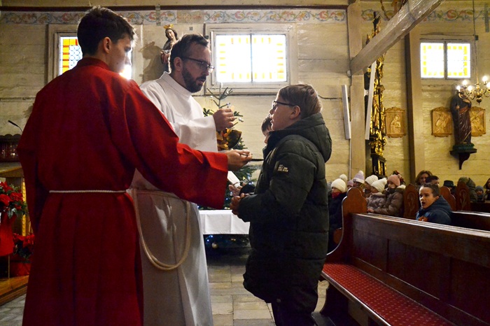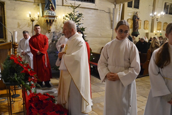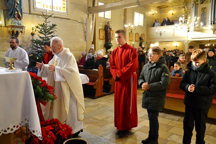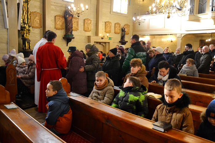 W naszej parafii, tradycyjnie o północy, została odprawiona Msza św. pasterska, inaugurująca uroczystość Narodzenia Pańskiego. Liturgii przewodniczył ks. Proboszcz Jan Palus, który również wygłosił okolicznościowe kazanie, wprowadzając wszystkich w tajemnicę Bożego Narodzenia. Podczas Pasterki dziękowaliśmy Panu Bogu za dar Narodzenia Jego Syna, Jezusa Chrystusa. W Noc pełną światła i ciszy zabrzmiała radosna nowina o przyjściu Zbawiciela. Wspólna modlitwa, śpiew kolęd oraz liczna obecność wiernych stworzyły wyjątkową, atmosferę tej świętej Nocy.