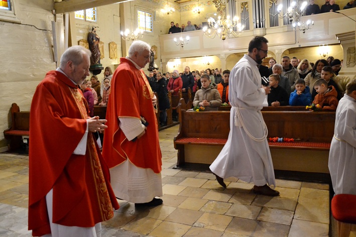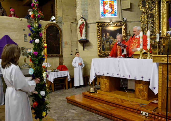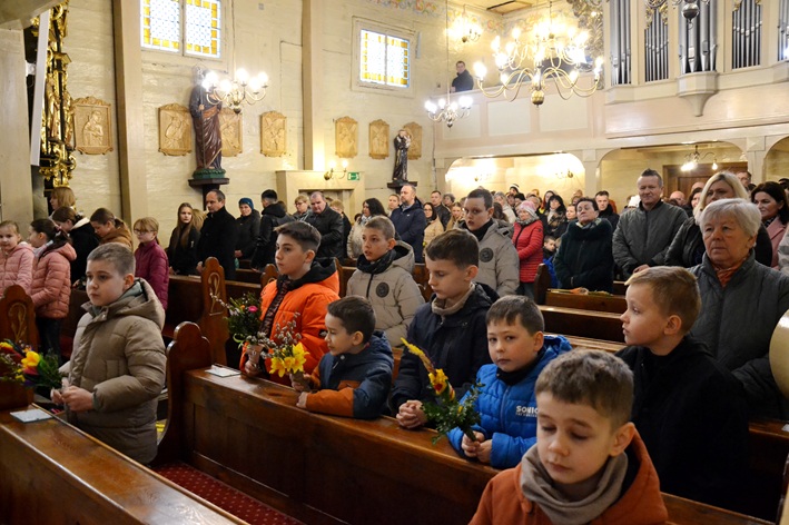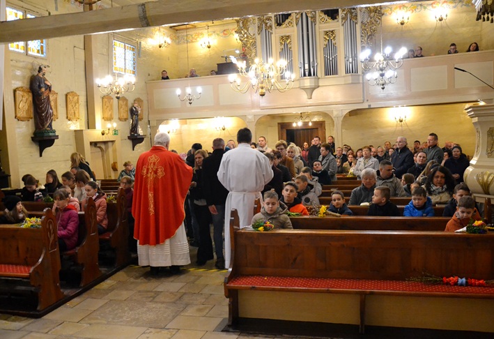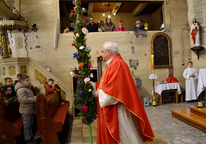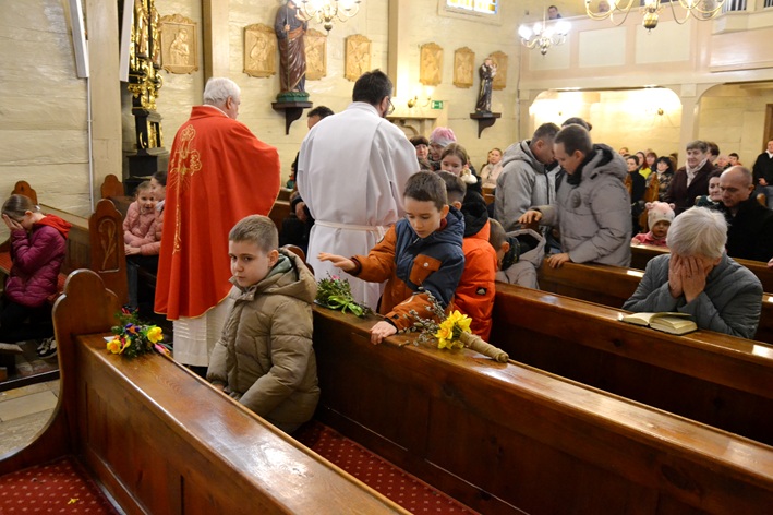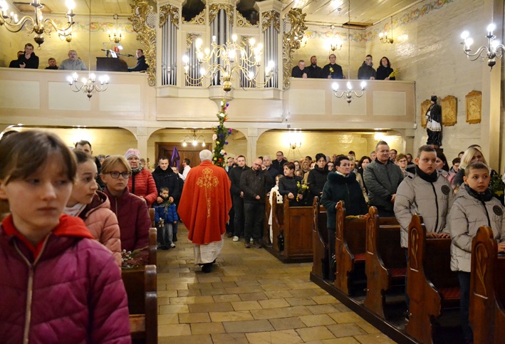 Uroczystości Niedzieli Palmowej rozpoczęły się procesją z palmami wokół kościoła. Wierni, niosąc palmy, wzięli udział w symbolicznym upamiętnieniu uroczystego wjazdu Pana Jezusa do Jerozolimy. Wspólna modlitwa, symboliczne palmy i procesja były nie tylko wyrazem wiary, ale też wprowadzeniem w refleksyjny nastrój Wielkiego Tygodnia, prowadzącego do Triduum Paschalnego i Zmartwychwstania Pańskiego.