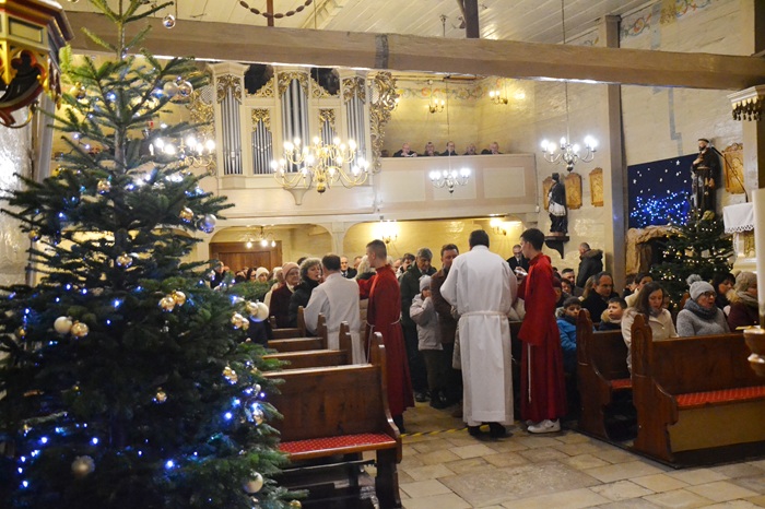 Ks. Proboszcz serdecznie podziękował za obecność i wspólne przeżywanie tajemnicy Narodzenia Syna Bożego, podziękował również za przygotowanie stajenki oraz świątecznego wystroju naszego kościoła, podziękował także liturgicznej służbie ołtarza i orkiestrze za uświetnienie tej uroczystości. Ks. Proboszcz złożył podziękowania wszystkim, którzy przyczynili się do przygotowań świątecznych w kościele, a na zakończenie życzył wszystkim parafianom i gościom Błogosławionych świąt spędzonych w rodzinnym gronie.