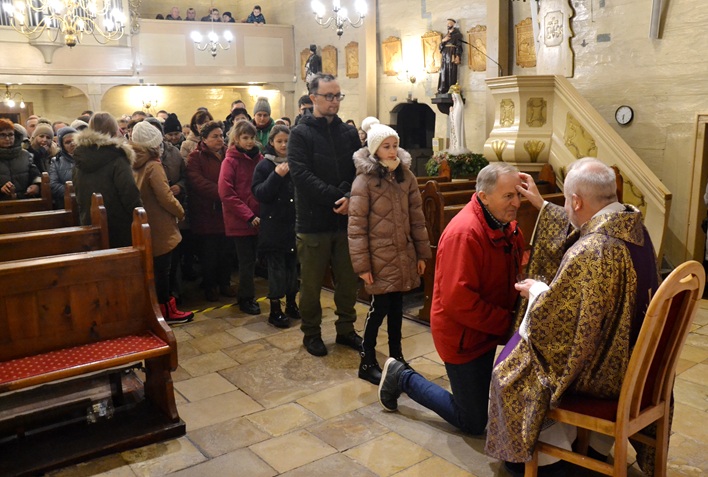 W środę, 18 lutego 2026 roku (Popielec), w Poniszowicach i okolicach pogoda była typowo zimowa i chłodna. Dzień charakteryzował się dużym zachmurzeniem oraz przelotnymi opadami śniegu, a także śniegu z deszczem. Odczuwalny był mróz, z temperaturami maksymalnymi w ciągu dnia zbliżonymi do zera lub lekko poniżej, a w nocy spadającymi do około -5°C. W ten zimny wieczór , o godz. 18.00 zebraliśmy się w kościele na Mszy św. z obrzędem posypania głów popiołem, to symbolizuje pokutę i przemijanie. Rozpoczęliśmy dzisiaj 40-dniowy okres Wielkiego Postu. W tym dniu wiernych obowiązuje post ścisły.