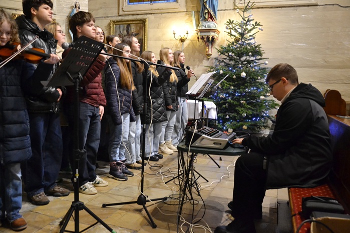 Ks. Proboszcz Jan Palus podziękował Grupie Muzycznej Teim oraz grupie Aktywnych Seniorów, pod opieką Pana Marka Kaczmarczyka, którzy z ogromną pasją i zaangażowaniem wykonali kolędy i pastorałki. Osobne słowa podziękowania Ks. Proboszcz skierował do parafian i gości, którzy byli obecni w kościele, uczestnicząc w tym muzycznym, duchowym przeżyciu, które przypomniało nam o pięknie Bożego Narodzenia.