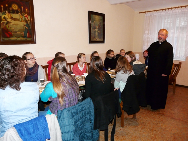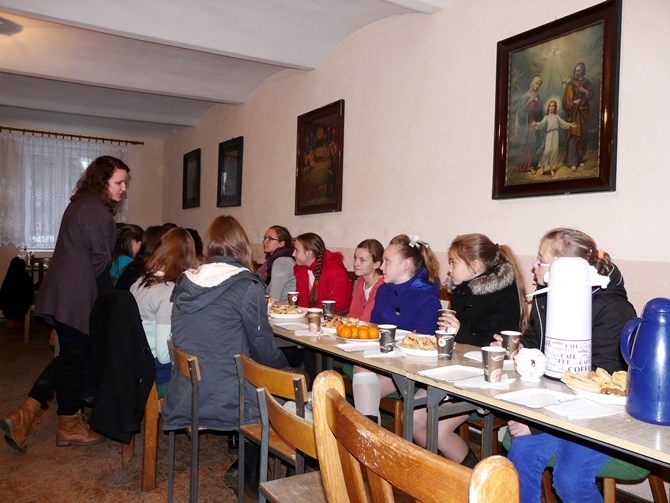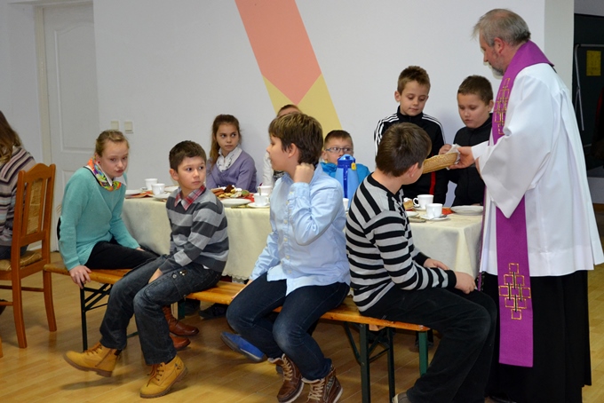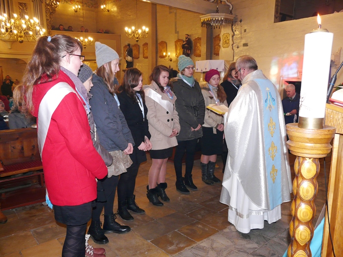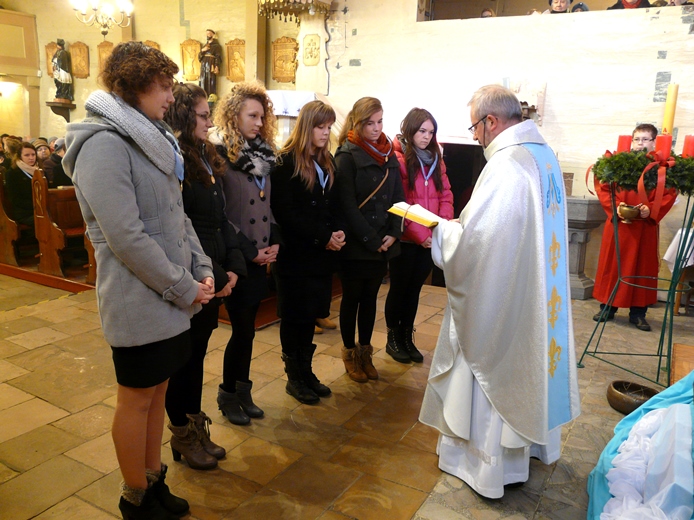 W ubiegłą niedzielę (8.12.2013 r.) obchodziliśmy Uroczystość Niepokalanego Poczęcia NMP. W tym dniu, jak wiadomo święto mają Marianki. Na Mszy św. o godz.9.00 były więc obecne nasze Marianki wraz z rodzicami i rodzeństwem. Podczas tej Mszy św. do Grona Dzieci Maryi przyjęto dwie, nowe Marianki. Pozostałe przeżywały w tym dniu zmianę medalika oraz zmianę koloru wstążki. Przed Nabożeństwem Adwentowym o godz.14.00 Marianki, miały w salce przygotowany poczęstunek.