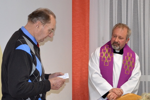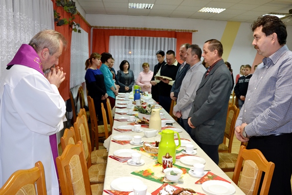Następnie ciepłym słowem wypowiedział‚ się przedstawiciel Rady Duszpasterskiej Pan Gerard Pordzik, który w kilku słowach złożył podziękowania na ręce ks. proboszcza Jana Palusa.