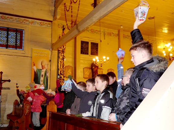 Już godzinę przed północą zbierali się wierni w kościele , ponieważ o godz. 23.30 rozpoczynało się Nabożeństwo ,, Pożegnanie Adwentu” w czasie którego wystąpił chór parafialny. Obecni na nabożeństwie parafianie przeżyli wspaniałe muzyczne chwile, które pogłębiły adwentową refleksję.