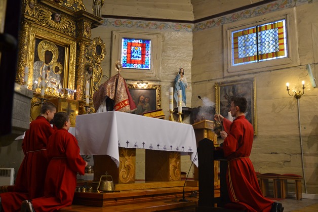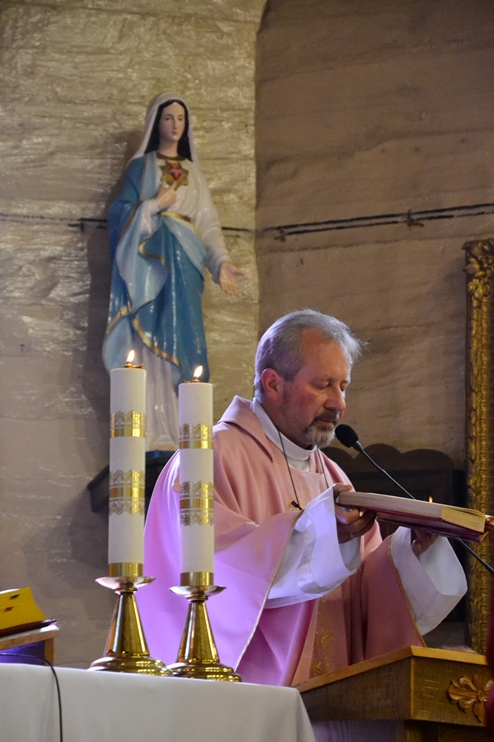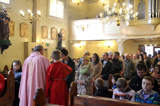 W tę niedzielę 30 marca, w IV Niedzielę Wielkiego Postu w naszej parafii, ks. proboszcz na wszystkich Mszach św. założył różowy ornat.