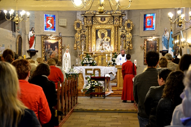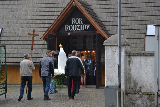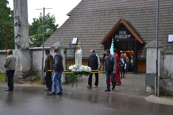 W dniu wczorajszym tj. 13 maja o godzinie 17.30 odbyło się w naszej parafii pierwsze w tym roku nabożeństwo Fatimskie, a po nabożeństwie Msza święta. Na nabożeństwie zgromadziło sięwielu czcicieli Matki Bożej. Przewodniczył mu ks. proboszcz Jan Palus. Nabożeństwo rozpoczęło się procesją z figurą Matki Bożej Fatimskiej, w czasie której, idąc z zapalonymi świecami odmawiamy Różaniec św. Jednak tym razem pogoda nie dopisała. Padał deszcz, dlatego z procesją zawróciliśmy do kościoła, gdzie wspólnie odmówiliśmy modlitwę różańcową, a po nabożeństwie uczestniczyliśmy w Mszy św. Nabożeństwa Fatimskie zawsze przyciągająwielu parafian, którzy przez wstawiennictwo Matki Bożej pragną uprosić potrzebne łaski dla siebie i swoich rodzin tak też było i tym razem.