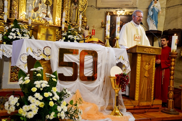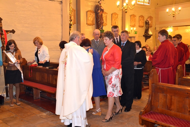 Ks. proboszcz w dalszej części kazania życzył Jubilatom, aby potrafili, dokonując wielu wyborów w życiu, dochować wierności Jezusowi, chociaż drogi ich życia mogą czasem być kręte i nie zawsze łatwo będzie znaleźć odpowiedzi na najprostsze pytania. Wtedy należy wierzyć, że człowiek może się odrodzić do prawdziwego i godnego życia w każdym momencie swojej egzystencji i że największą radością człowieka jest spotkanie z Jezusem Chrystusem, Bogiem – Człowiekiem. A obecny świat potrzebuje świadków Jezusa Chrystusa. Każdy z nas na wzór Apostołów powinien swoją postawą w sposób czytelny świadczyć, że jest Jego uczniem i takiej postawy z całego serca życzył ks. proboszcz Jubilatom na dalsze lata ich życia.