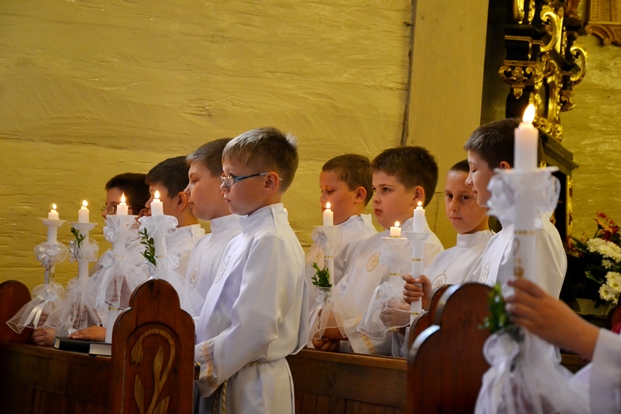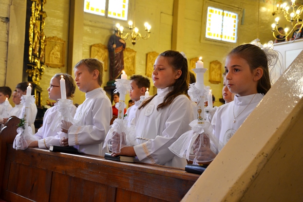 W niedzielę 25 maja, o godz. 11.00 w naszym kościele miała miejsce wielka uroczystość. Rocznicę swojej Pierwszej Komunii Świętej obchodzili uczniowie klas III. Było to dla nich ogromne przeżycie, mimo, że przez cały rok mogły przystępować do Sakramentu Pokuty i przyjmować Pana Jezusa. Mszę Świętą w ich intencji odprawił nasz proboszcz – ks. Jan Palus, który wygłosił też Słowo Boże.