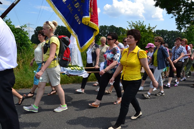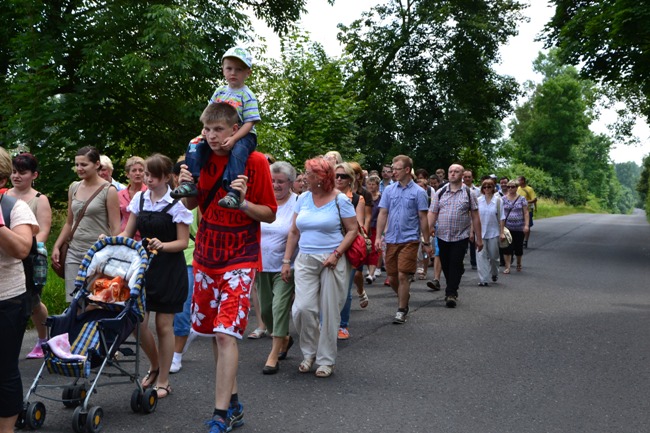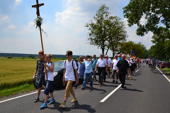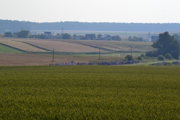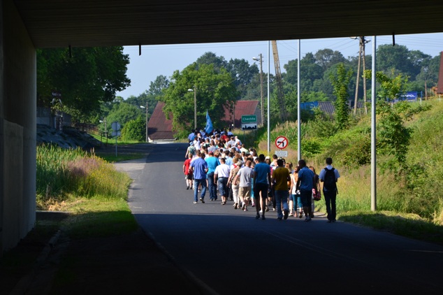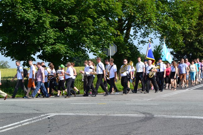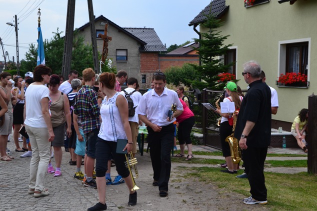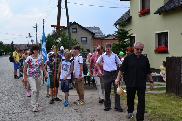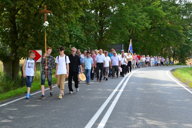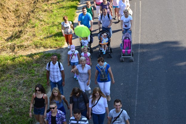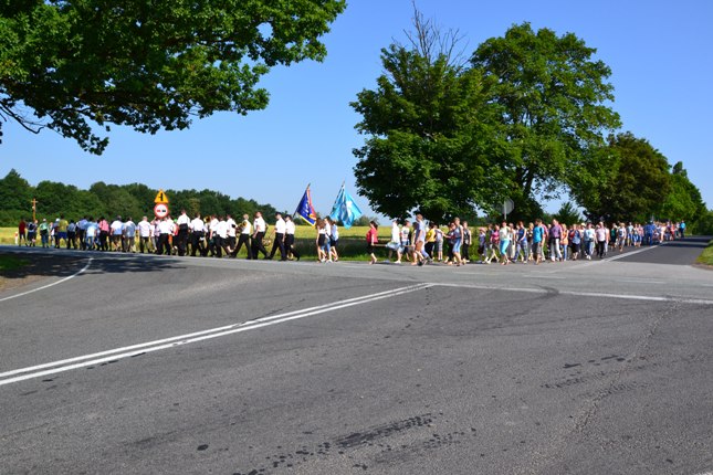 Wyruszyliśmy z kościoła w Poniszowicach o godz. 7.30. Pobłogosławił nas Ks. Proboszcz Jan Palus. Wraz z nami szła orkiestra, która przygrywała nam pieśni oraz marsze, do których szło się radośnie i z werwą. Podczas pielgrzymki wszyscy szli żwawo i mimo bólu nóg z uśmiechem na twarzy. Z modlitwą i śpiewem było nam raźniej. Pogoda była znakomita. Świeciło słońce, a delikatny wietrzyk chłodził nam twarze. W drodze powrotnej przewodził nam Ks. Proboszcz.