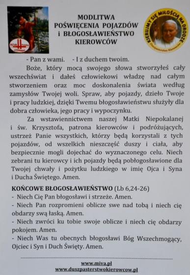 Święcenie pojazdów to z jednej strony zaufanie Bogu i poświęcenie mu owoców ludzkiej pracy, z drugiej wzięcie na siebie odpowiedzialności za rozsądną i rozważną jazdę, będąc bowiem uczestnikiem ruchu drogowego odpowiadamy nie tylko za siebie, ale także jesteśmy odpowiedzialni za kulturę i bezpieczeństwo ruchu na drodze, na której w danej chwili się poruszamy.