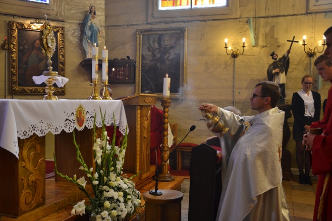Uroczystej sumie odpustowej przewodniczył ks. Sebastian Wiśniewski, który wygłosił również homilię, a współkoncelebransem był ks. emeryt Alfred Klimek. Zwieńczeniem uroczystości była procesja eucharystyczna z udziałem księży, Dzieci Maryi, strażaków, orkiestry, ministrantów i chóru, którzy uświetnili całą uroczystość. Na zakończenie został odśpiewany hymn pochwalny "Te Deum".