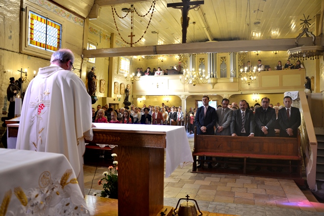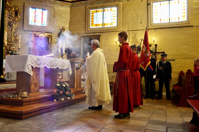 Dzisiaj 12 października w naszej parafii obchodziliśmy kolejną rocznicę poświęcenia naszego kościoła. Zachęca nas ona do wdzięczności za dar naszej świątyni, jak i wdzięczności za dar wiary, który włączył nas w żywy Kościół, który jest Mistycznym Ciałem Chrystusa. Mszy św. przewodniczył nasz proboszcz ks. Jan Palus, on też wygłosił Słowo Boże. Liturgię Mszy św. uświetniły poczty sztandarowe: Dzieci Maryi i strażaków oraz gra orkiestry parafialnej i śpiew naszego chóru. Tradycyjnie po zakończeniu uroczystości orkiestra na placu kościelnym przedstawiła kilka utworów. Jak co roku parafianie i goście czekali na ten występ, gromko też oklaskiwali ten popis.