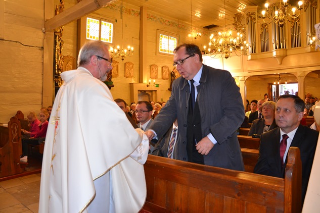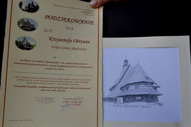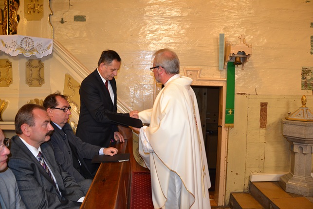 Dziś w czasie tej uroczystości Ks. Proboszcz złożył podziękowanie swoim Parafianom za modlitwę i wszystkie ofiary, a także przybyłym gościom, którzy wspierali przeprowadzane prace renowacyjne i remontowe naszej świątyni. Ks. Proboszcz składał podziękowanie za życzliwe wspieranie parafii na wszystkich etapach prowadzonych prac remontowych naszego Parafialnego Kościoła Panu Andrzejowi Pilotowi I Wicewojewodzie Śląskiemu. Panu Waldemarowi Dombkowi Wicestaroście Powiatu Gliwickiego podziękował za współpracę, wsparcie finansowe oraz okazaną pomoc. Panu Krzysztofowi Obrzutowi Wójtowi Gminy Rudziniec za życzliwość, zrozumienie, okazaną pomoc oraz wsparcie finansowe. Panu Adamowi Wojtowiczowi za daleko idącą, bezinteresowną pomoc w przygotowaniu niezbędnej dokumentacji potrzebnej do uzyskania zewnętrznych środków finansowych, wsparcie, zrozumienie, zaangażowanie oraz życzliwą współpracę podczas prac remontowych tego szczególnego zabytku, jakim jest nasz kościół parafialny w Poniszowicach. Panu Andrzejowi Frejno Radnemu Powiatu Gliwickiego za bezinteresowne zaangażowanie, życzliwą współpracę, pomoc w zdobyciu zewnętrznych środków finansowych, zrozumienie oraz aktywną obecność podczas przeprowadzonych prac remontowych naszego Parafialnego Kościoła oraz Panu Arturowi Kiowskiemu właścicielowi firmy budowlanej za autentyczną, budzącą szacunek, troskę o dobro naszej, poniszowickiej świątyni podczas wykonywania wszelkich prac remontowych i renowacyjnych. Ks. Proboszcz złożył również podziękowania Radzie Gminy za okazaną pomoc w uzyskaniu wsparcia finansowego, co jest dowodem na to , że Władzom Samorządowym Gminy Rudziniec zależy na ratowaniu dóbr kultury narodowej w naszej gminie. Ks. Proboszcz stwierdził iż te działania są świadectwem działalności na rzecz małej wspólnoty wiernych oraz duchową radością, a dla innych pozostaną przykładem ofiarnego i odpowiedzialnego angażowania się ludzi świeckich w życie wspólnoty parafialnej. Życzył wszystkim pełni satysfakcji z podejmowanych przedsięwzięć, realizacji zamierzonych celów oraz wielu sukcesów.