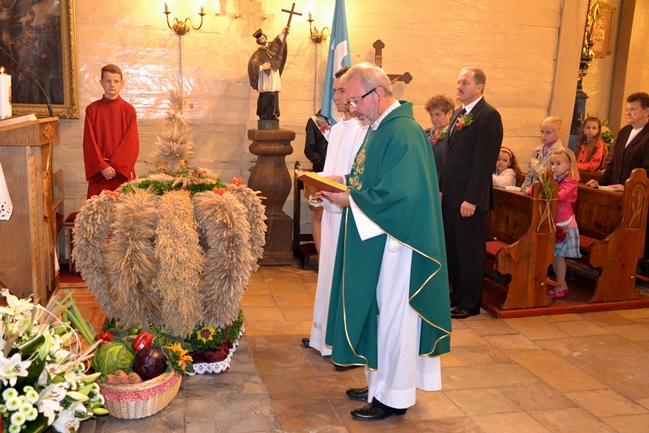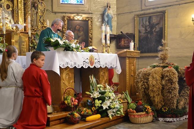Dożynki to czas dziękczynienia Stwórcy za plony. Święto zakończenia żniw. Wszyscy z szacunkiem i uznaniem myślimy o naszych żywicielach, o rolnikach, których ciężkiej pracy zawdzięczamy to, że na naszych stołach jest chleb. Chleb, który parafianie przynieśli do świątyni ciągle nas uczy, by być dobrym i przypomina nam to, czego uczył św. Albert, że „trzeba być dobrym jak chleb, który leży na stole i z którego każdy może odłamać tyle, ile potrzebuje”.