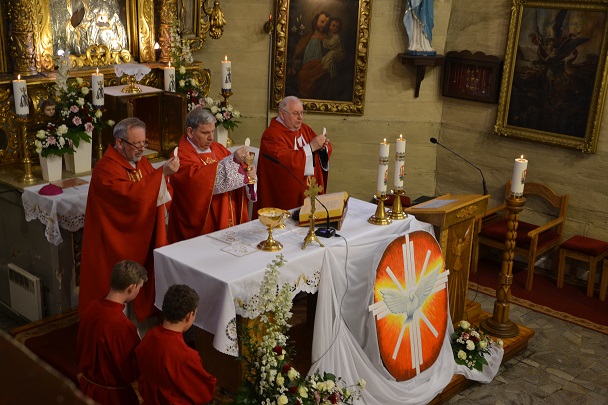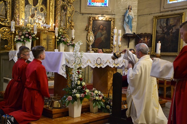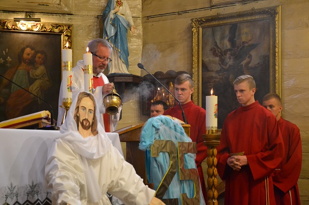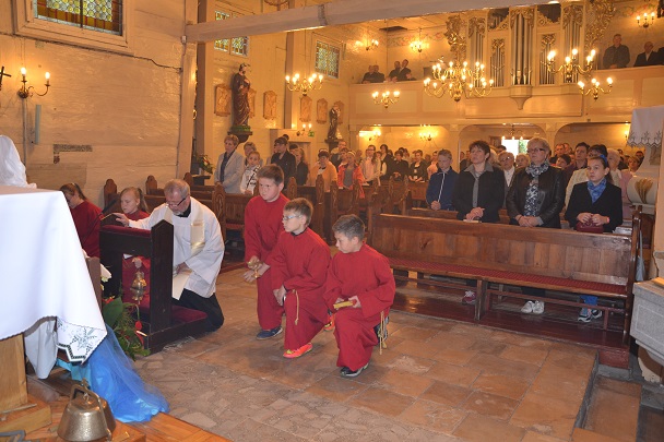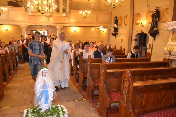 Uroczysta Msza Święta odbyła w niedzielę o godz. 11.00 . Licznie zgromadzeni parafianie i goście uczestniczyli w tej uroczystej Mszy Świętej, której przewodniczył nasz proboszcz ks. Jan Palus, on też wygłosił homilię.