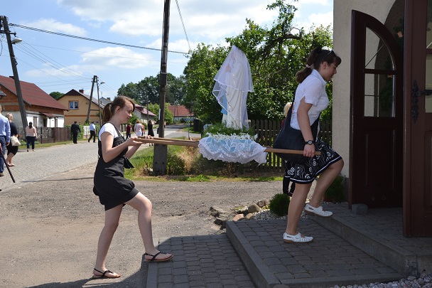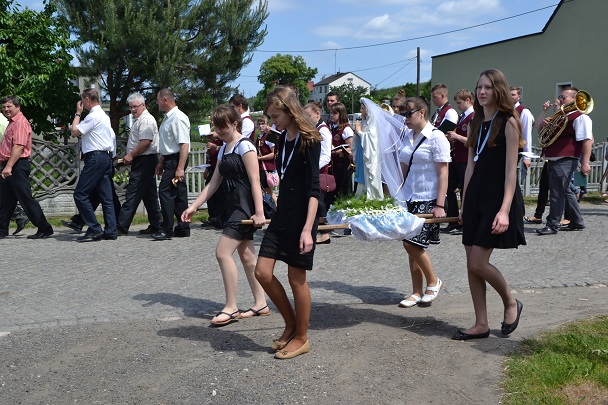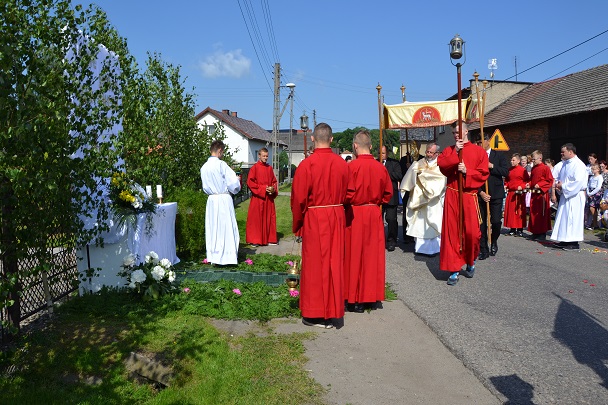 Zwyczajowo tego dnia mieszkańcy Widowa zebrali się przy kapliczce, aby stamtąd wyruszyć procesją do kościoła parafialnego w Poniszowicach, gdzie odbyła się Msza Św. gromadzka w intencji parafian z Widowa. Po Mszy Świętej o godz. 8.00 wyruszyła procesja eucharystyczna do czterech ołtarzy, które zostały przygotowane przez poszczególne wioski naszej parafii: I ołtarz- Niekarmia, II - Niewiesze, III – Widów oraz IV - Poniszowice. Osoby w niej uczestniczące – dziewczynki sypiące kwiaty, Marianki i strażacy niosący sztandary, orkiestra dęta, a dopiero za baldachimem na całej szerokości trasy kroczyli wierni. Udział we Mszy św. i procesji jest wyrazem wiary w prawdziwą obecność Chrystusa w Najświętszym Sakramencie. W ten sposób zapraszamy Chrystusa do uczestnictwa w naszym życiu codziennym i uświęcenia całej naszej parafii. My - jako chrześcijanie, niosąc Pana Jezusa w Najświętszym Sakramencie przez ulice naszej parafii dajemy świadectwo. - Nie idziemy sami, ale jest to procesja z Jezusem. A więc przekonani jesteśmy, że to On idzie z nami i pokazuje to, co jest w życiu najważniejsze, rozświetla drogi życia i przychodzi do każdego człowieka. Mieszkańcy Poniszowic pięknie przyozdobili swoje domostwa na trasie, odbywającej się w dniu dzisiejszym, procesji.