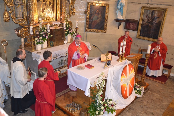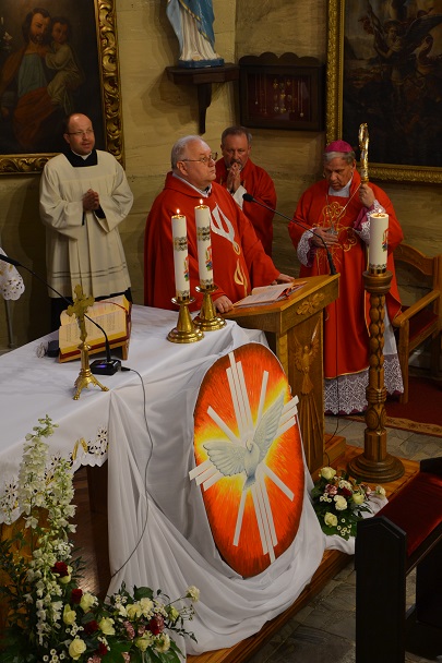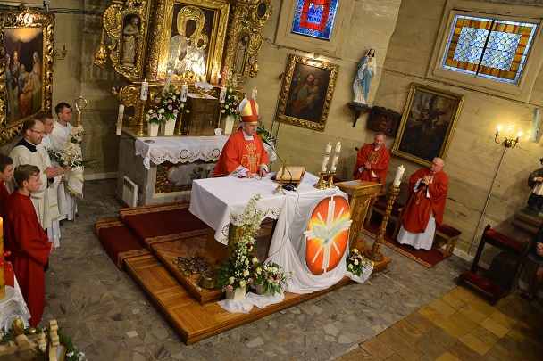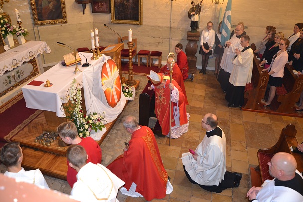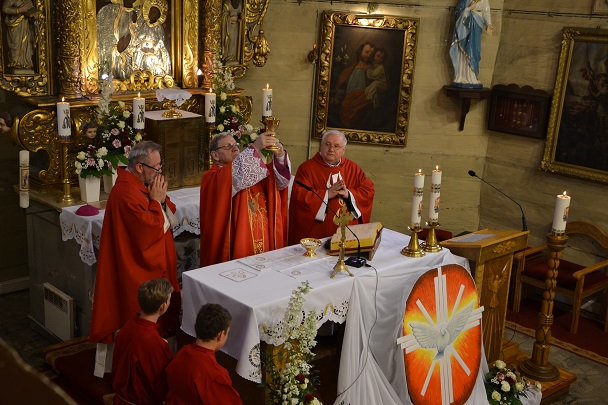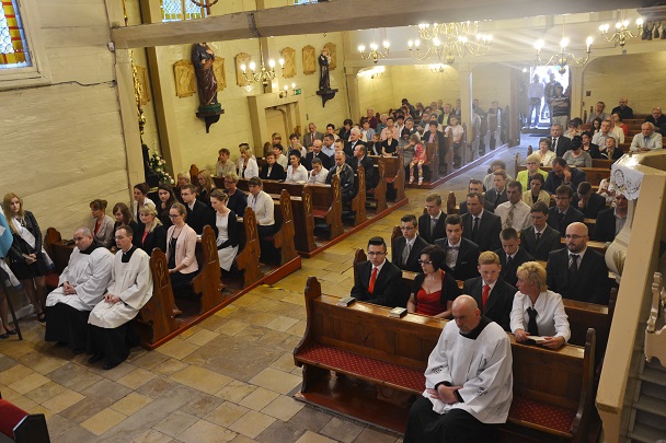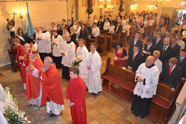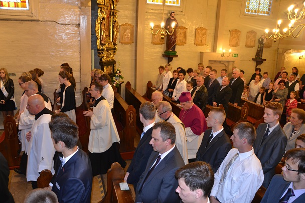 Punktem kulminacyjnym wizytacji kanonicznej była Eucharystia sprawowana przez Ks. Biskupa Jana Kopca Ordynariusza Diecezji Gliwickiej, w czasie której młodzież z klas III gimnazjum przyjęła sakrament bierzmowania. Przed rozpoczęciem Eucharystii proboszcz ks. Jan Palus powitał i wprowadził Ks. Biskupa Jana Kopca wraz z Wikariuszem Generalnym ks. Marcinem Królikiem. Po powitaniu gości przedstawiciel Rady Parafialnej przedstawił księdzu biskupowi sprawozdanie duszpasterskie z ostatnich lat funkcjonowania parafii i poprosił Ks. Biskupa o udzielenie sakramentu bierzmowania młodzieży naszej parafii. Do bierzmowania przystąpiło 16 kandydatów. Ks. Biskup powitał wszystkich obecnych, podziękował za sprawozdanie przedstawicielowi Rady Parafialnej p. Andrzejowi Frejno. Ostatnim punktem wizytacji była Msza św. połączona z udzieleniem sakramentu bierzmowania - tak ważnego momentu w życiu młodych ludzi. Duch Św. umocnił młodzież przyjmującą ten sakrament, aby wiarę swą mężnie wyznawała, broniła jej i według niej żyła. Sakrament bierzmowania w tym dniu przyjęło 16 osób. Po homilii ks. bp odniósł się do sprawozdania z działalności parafii i wyraził swoje zadowolenie z funkcjonowania naszej parafii, a księdzu proboszczowi za prowadzenie naszej wspólnoty parafialnej oraz wszystkie prace wykonane przez ostatnie 5 lat.