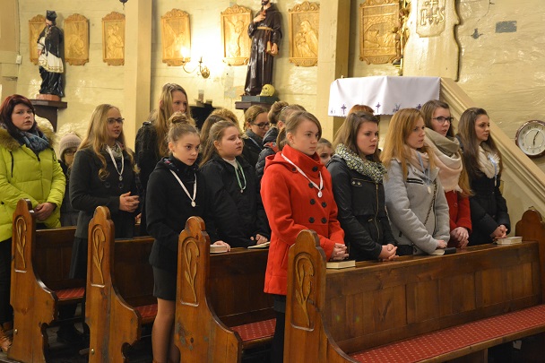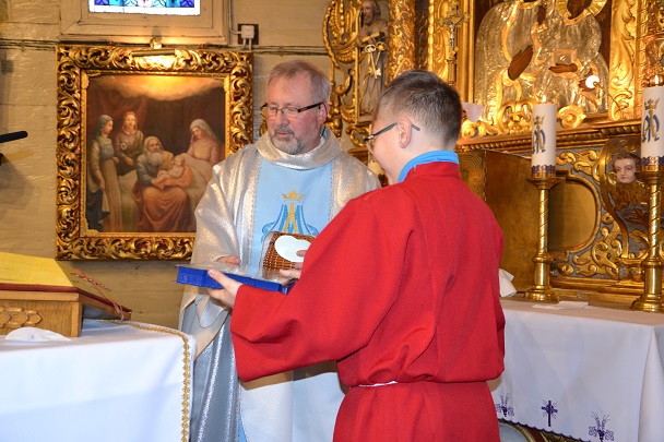 W sobotę 8 grudnia Kościół obchodził uroczystość Niepokalanego Poczęcia Matki Bożej. W naszej parafii jest to dzień szczególnej modlitwy za wspólnotę Dzieci Maryi. O godz. 18.00 odbyła się w ich intencji Eucharystia. Podczas niej dziewczyny złożyły, lub odnowiły swoje przyrzeczenia. Mszy św. przewodniczył i kazanie wygłosił ks. proboszcz Jan Palus. Do grona wspólnoty Dzieci Maryi przyjęte zostały dwie nowe dziewczynki. Na zakończenie Mszy św. ks. proboszcz złożył podziękowania rodzicom Dzieci Maryi i zaprosił na słodki poczęstunek do salki parafialnej.
