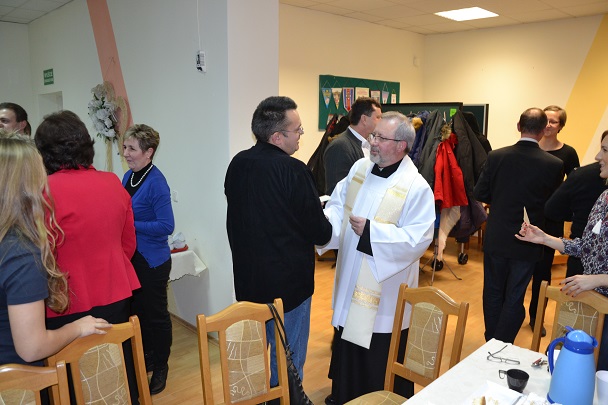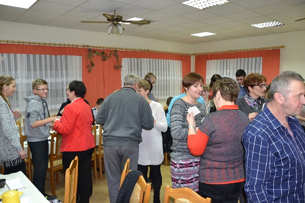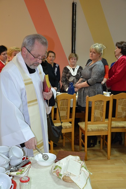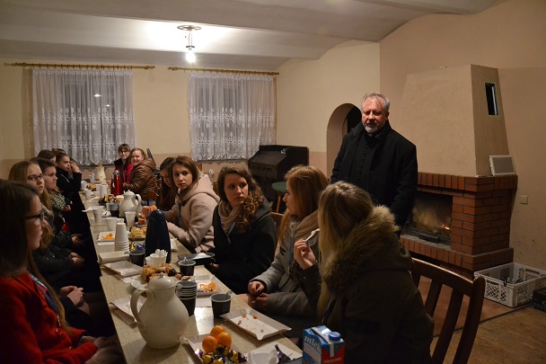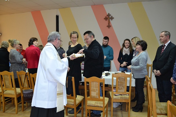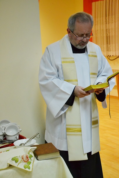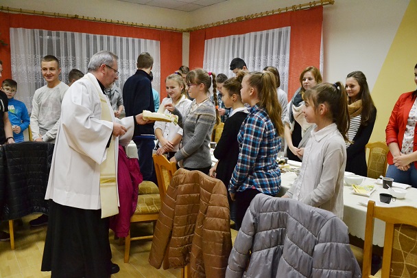 Gdy już wszyscy zajęli miejsca przy świątecznie udekorowanym stole , został przeczytany fragment Pisma Świętego, a następnie Ksiądz Proboszcz podzielił się z nami refleksją nad tajemnicą Bożego Narodzenia. Później nadszedł czas na bożonarodzeniowe życzenia przy łamaniu się opłatkiem oraz degustację świątecznych smakołyków.