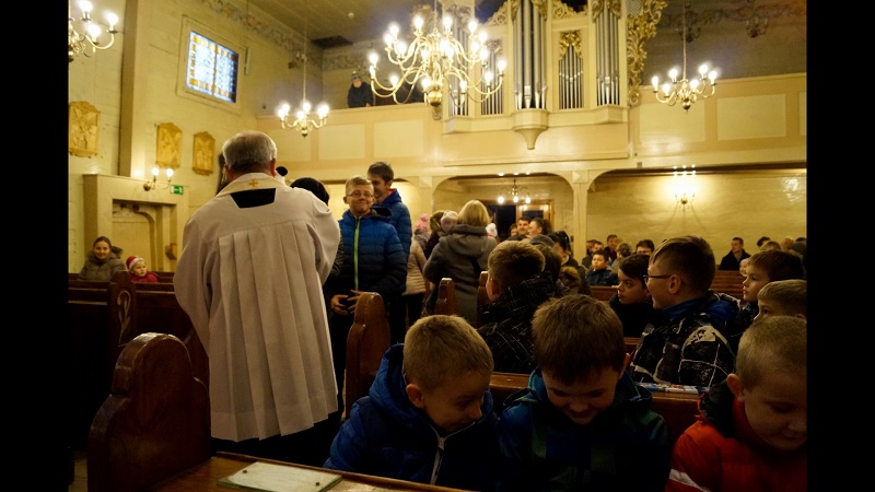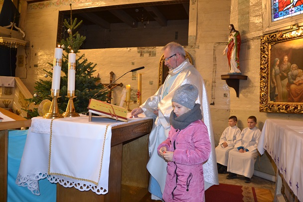 Na zakończenie Mszy świętej ksiądz Jan podziękował dzieciom i dorosłym za wytrwałość i za udział we wspólnym oczekiwaniu na przyjście Pana Jezusa.