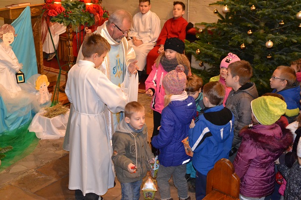 24 grudnia, w Wigilię Świąt Bożego Narodzenia o godz.8.00 po raz ostatni w bieżącym roku kalendarzowym odprawiona została Msza św. roratnia. Przez cały okres Adwentu dzieci naszej parafii uczestniczyły w tych spotkaniach, oczekując na narodziny naszego Pana Jezusa Chrystusa. Do godnego przyjęcia Mesjasza do swoich serc przygotowywało nas codzienne słowo Boże oraz rozważania poruszające sumienia i zapadające w serca. Każdego dnia kościół bardzo licznie wypełniał się wiernymi, którzy przy blasku zapalonych lampionów modlili się w skupieniu, dziękując Panu Bogu za wszystkie łaski