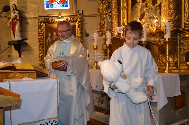 Ostatnia tegoroczna Msza święta roratnia zgromadziła wiele dzieci i wiernych. Odbyło się losowanie serduszek, dzieci otrzymały nagrody. Specjalne upominki dostały dzieci, które przychodziły na spotkania roratnie z lampionami. Ks. Proboszcz przygotował jeszcze specjalne niespodzianki dla naszych milusińskich. Te niespodzianki zabrały ze sobą dzieci, których serduszka zostały wylosowane przez p. Agnieszkę Macioszek, przez p. Bernarda Jacek i przez samego proboszcza.