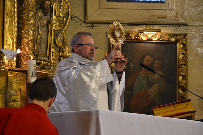 Ksiądz Proboszcz po Mszy Świętej odwiedzał chorych naszej parafii.
