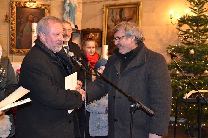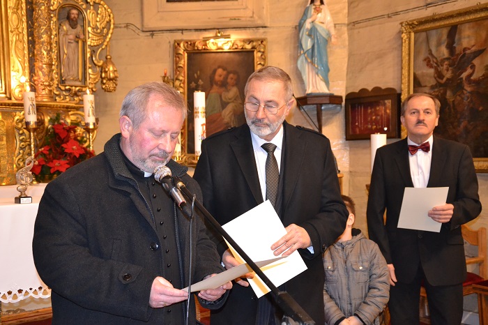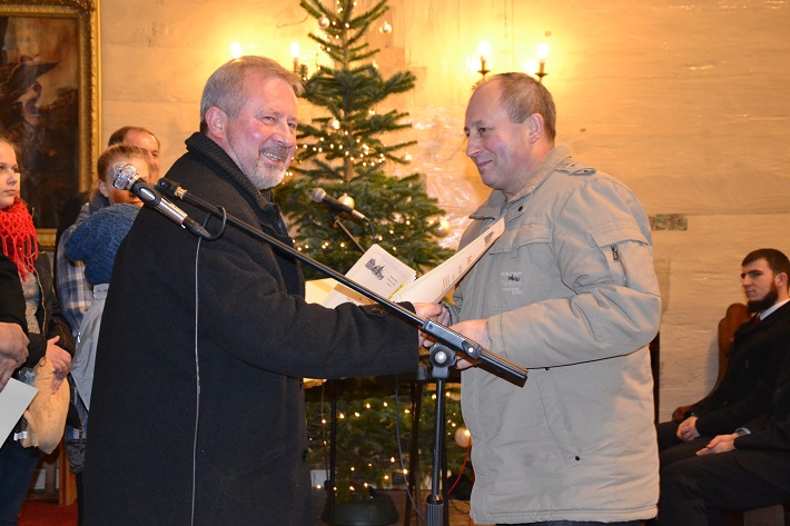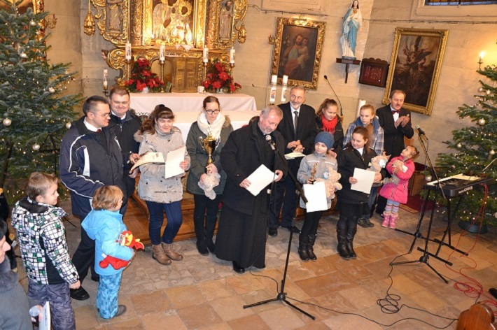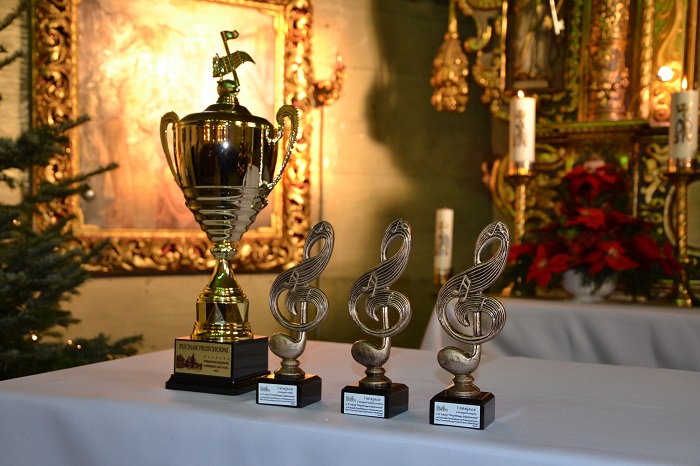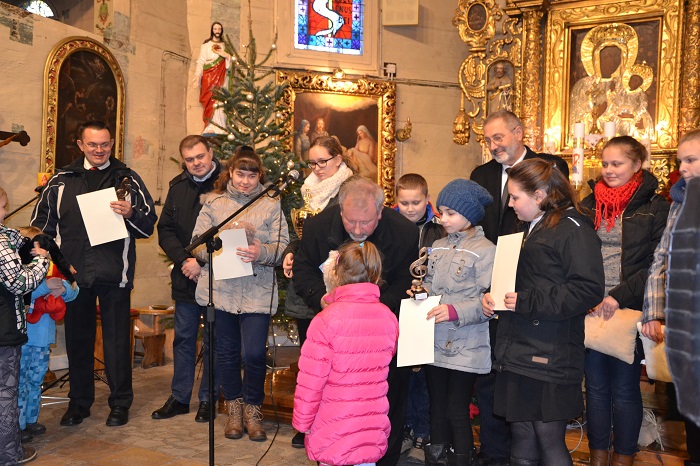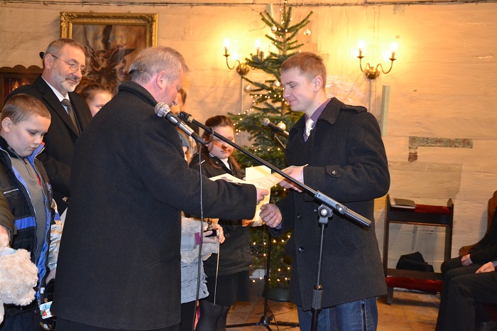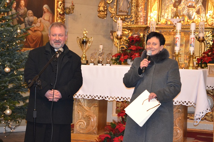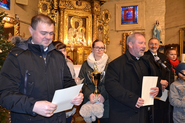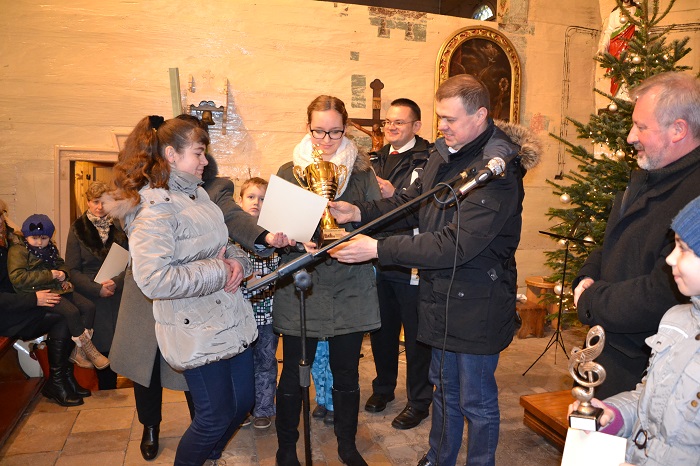 Pan Roman Woszek zeszłoroczny zdobywca pucharu przechodniego oddając puchar zaśpiewał kolędę, a publiczność gromkimi brawami nagrodziła ten występ.