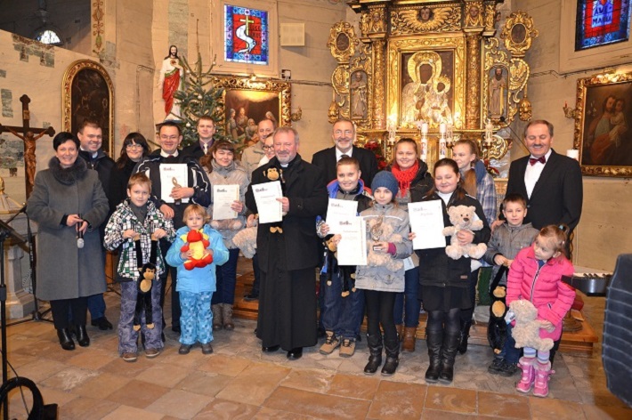 Ks. Proboszcz Jan Palus pozostałym uczestnikom kolędowania wręczył pluszowe zabawki oraz pamiątkowe dyplomy.