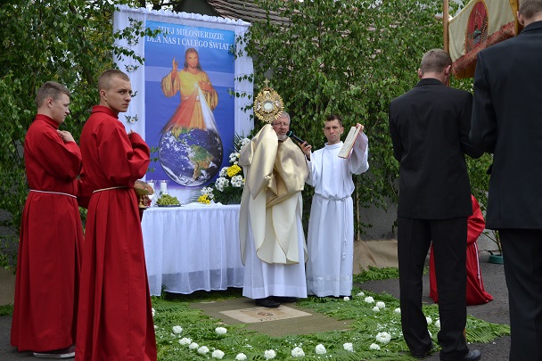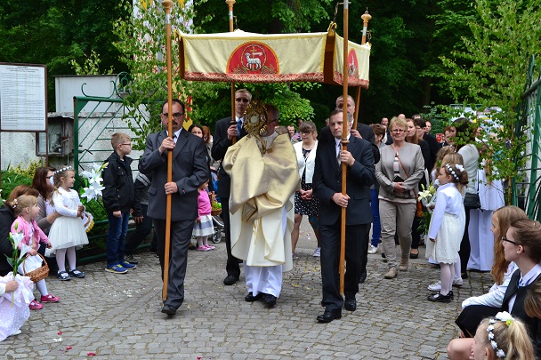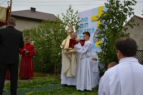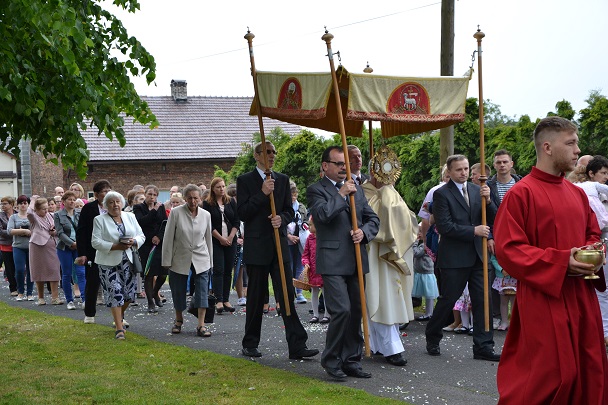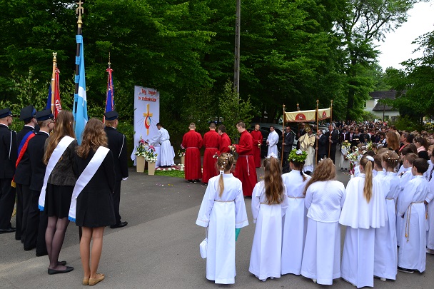 Serdeczne Bóg zapłać wszystkim którzy przyczynili się w jakikolwiek sposób do organizacji dzisiejszego święta. Dziękuję służbie liturgicznej, pani organistce, orkiestrze, Dzieciom Maryi, Druhom OSP, rodzicom i dzieciom sypiącym kwiaty, dzieciom komunijnym i rocznicowym, a także każdemu kto dał świadectwo wiary poprzez udział w procesji Bożego Ciała.