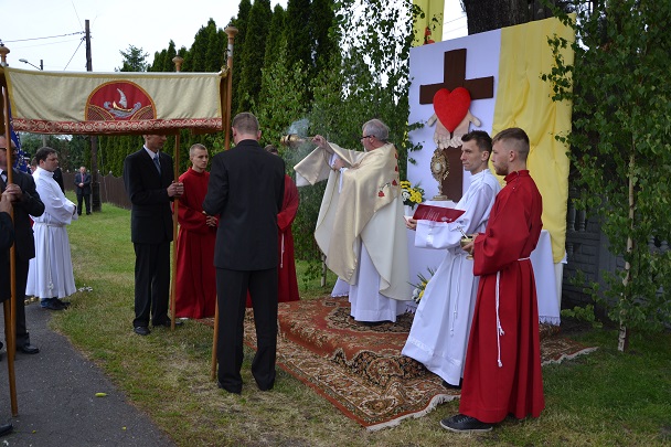 We czwartek, 26 maja, po uroczystej Mszy Św. o godz. 8.00 wierni naszej parafii wyruszyli w procesji Bożego Ciała z Chrystusem obecnym w Najświętszym Sakramencie, żeby Jego błogosławieństwo oraz moc mogły dotrzeć do każdego człowieka. Jak co roku przygotowane cztery ołtarze, zielenią brzózek i pięknem kwiatów, odzwierciedlały ludzki hołd i adorację dla Najświętszego Ciała i Krwi Chrystusa.