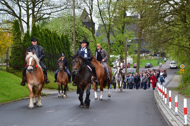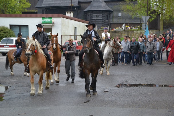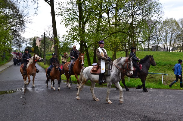 W tym roku już po raz szósty wiernym podczas wtorkowej procesji towarzyszyły konie. Procesji przewodniczy Ks. proboszcz Jan Palus, a jeźdźcom ksiądz Rafał.