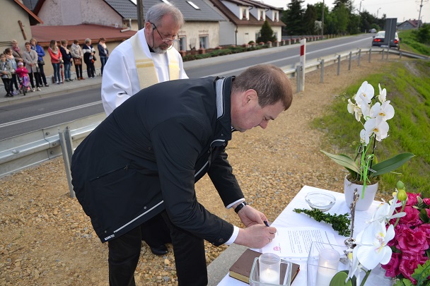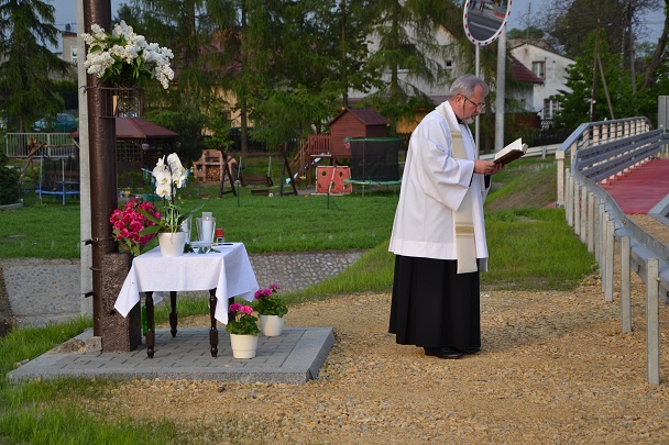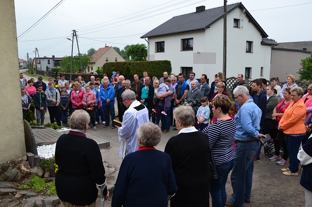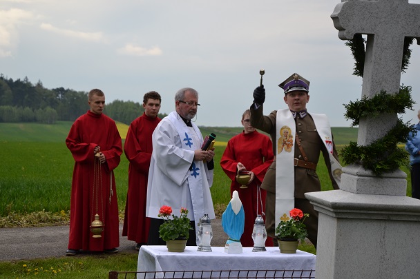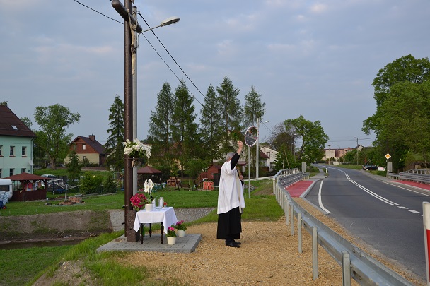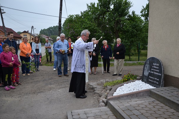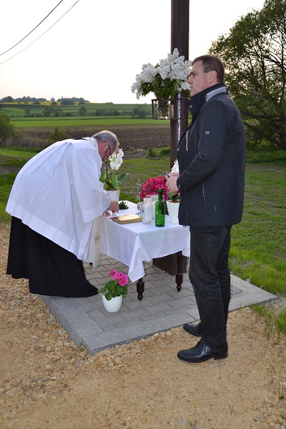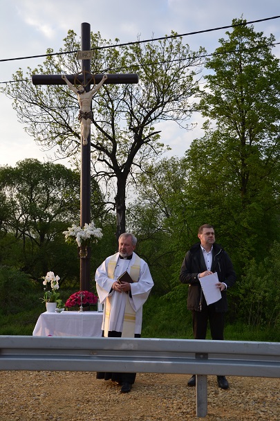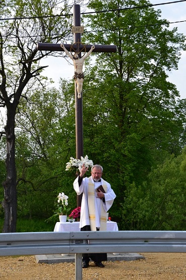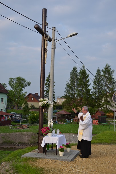 W środę 18 maja 2016r. po nabożeństwie majowym i Mszy św. wieczornej, koło godziny 19.00, Ksiądz Proboszcz Jan Palus dokonał uroczystego poświęcenia odrestaurowanego Krzyża przydrożnego.