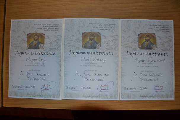 W czwartek 12 maja 2016r. w czasie Mszy świętej szkolnej o godzinie 17:00 trzej ministranci młodsi złożyli uroczyste przyrzeczenie ministranckie.