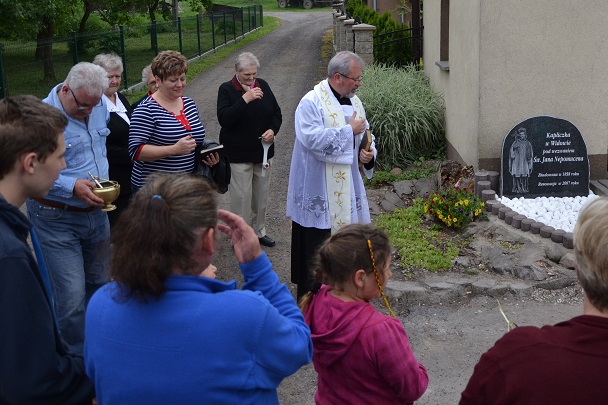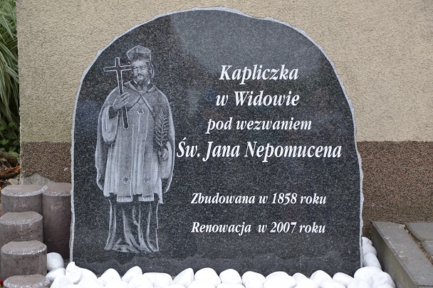 Tegoroczne popołudnie, w uroczystość Bożego Ciała, było dla mieszkańców Widowa wyjątkowe. Zebrali się oni o godz. 15.00 przed kapliczką, gdzie ksiądz proboszcz Jan Palus poświęcił pamiątkową tablicę z wizerunkiem św. Jana Nepomucena. Ksiądz proboszcz przedstawił krótką informację historyczną kapliczki, podziękował za inicjatywę i dobry pomysł p. sołtys Ewie Sztyrc, podziękował też mieszkańcom za liczne przybycie i po krótkiej modlitwie za żyjących jak i za zmarłych mieszkańców Widowa nastąpiło poświęcenie pamiątkowej tablicy. Po ceremonii poświęcenia wszyscy zebrani uformowali procesję i wraz z proboszczem Janem Palusem udali się z modlitwą na ustach wspomnianą procesją po polach.