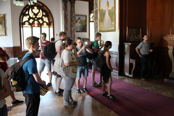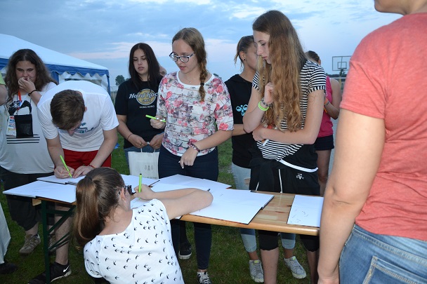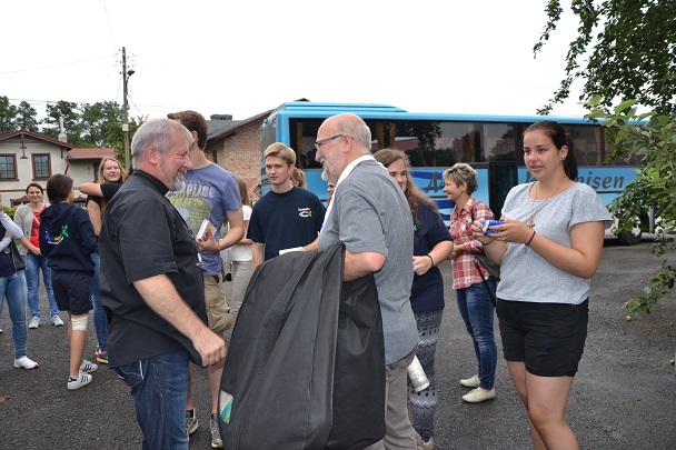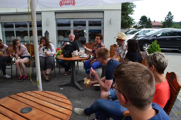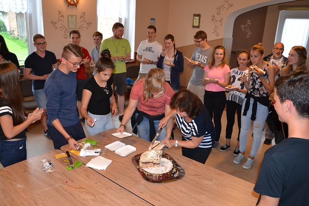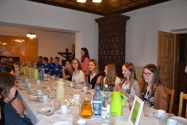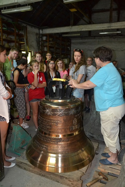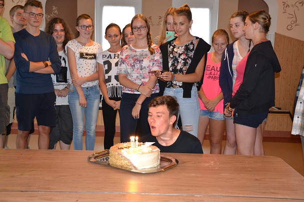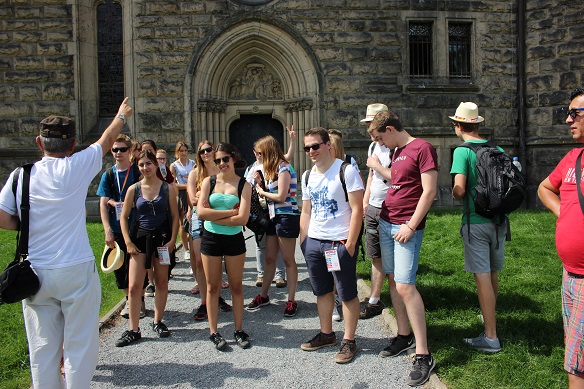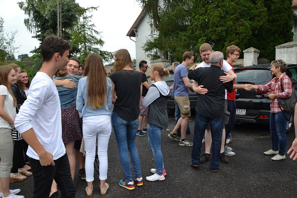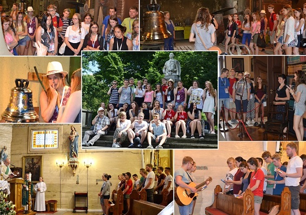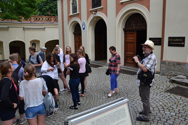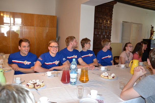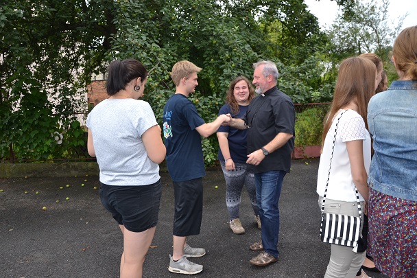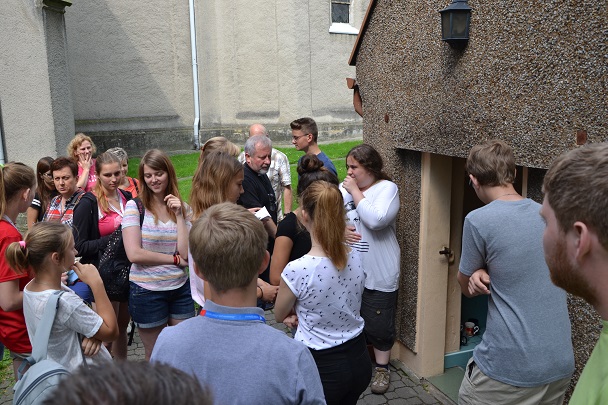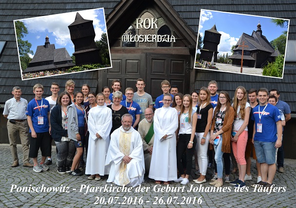 Wtorek, 19.07.2016r. 6.00 rano w Kamp-Lintfort rozpoczął się czas podróży naszych gości do Krakowa, który jest celem ich wyjazdu. Pierwszy nocleg przewidzieli w Dreźnie. Jednak całe popołudnie spędzili na zwiedzaniu tego pięknego miasta. W środę 20.07.2016 r. rano wyjechali w kierunku Polski. Pierwszym celem był Wrocław, tam została część grupy. Przy natężonym ruchu na autostradzie A4, dotarli do Poniszowic koło godziny 17.30. Ks. Proboszcz, przedstawiciele rodzin, które przyjęły naszych gości na nocleg i wolontariusze przywitali niemiecką młodzież bardzo serdecznie. Zostali oni zaproszeni na plebanię na śląski kołocz. W tym dniu Urodziny obchodził Diakon, który przyjechał z młodzieżą z Niemiec. Zaśpiewaliśmy tradycyjne 100 lat, złożyliśmy życzenia i nastała rodzinna atmosfera. Serdecznościom nie było końca, jednak po 18.00 grupa przeszła do kościoła na wieczorną Mszę św. Należy dodać, że nasi goście przywieźli jako prezent dla parafii piękną wielkanocną świecę, przyozdobioną logo ŚDM. Świeca to zostanie umieszczona w kościele na Wielkanoc roku 2017. 21 lipca, w czwartek grupa wraz z przewodnikiem pojechała zwiedzać kopalnię Luiza w Zabrzu, a później miasto Gliwice wraz z radiostacją, gdzie zapoznali się z historią naszego regionu. Zwiedzili również drewniany kościół w Żernicy, delektowali się ciastem i kawą , specjalnie dla nich przygotowaną i tam też uczestniczyli w wieczornej Mszy św. wczesnym wieczorem, zmęczeni wrócili do goszczących ich rodzin. W piątkowy poranek 22 lipca, nasi goście i wolontariusze pierwsze kroki skierowali do naszego parafialnego kościoła, gdzie odmówili Różaniec i uczestniczyli w porannej Mszy św., a o godz. 10. 30 byli już w Taciszowie w Ludwisarni Państwa Felczyńskich w Taciszowie. Ta odlewnia dzwonów zajmuje się produkcją dzwonów i tablic brązowych, kontynuuje tradycje rozpoczętą w 1808 roku w Kałuszu (ob. Ukraina). Właścicielem odlewni jest p. Zbigniew Felczyński, syn Tadeusza i wnuk Jana, w prostej linii potomek ludwisarzy kałuskich. Jest to jedyna ludwisarnia w Polsce, która kontynuuje w niezmienionej i sprawdzonej formie tradycyjną technikę wytwarzania dzwonów. Dzwony Ludwisarni Felczyńskich pracują w wielu kościołach na terenie Polski, w całej Europie, oraz na wszystkich kontynentach. Instrumenty pozytywnie przechodziły badania kampanologiczne i były wielokrotnie nagradzane. Po wizycie w ludwisarni cała grupa pojechała do Pławniowic, aby zwiedzić pałac i podelektować się piękną pogodą w przypałacowym parku. Jeszcze nie przestali sobie wyobrażać życie rodziny Ballestremów, a już byli w trasie do Bytomia, gdzie koło godziny 15.30 gościły ich siostry ze Zgromadzenie Sióstr Służebniczek Najświętszego Serca Jezusa. Na początku wizyty odbyło się Nabożeństwo do Miłosierdzia Bożego razem z podopiecznymi sióstr. Nasza młodzież uczestniczyła też we wspólnej kolacji. Po tak pełnym wrażeń dniu, nasi goście wraz z wolontariuszami pojechali nad jezioro od strony Niewieszy. Tam spędzili udany wieczór. W barze u Bartusia zjedli smaczną kolację, później spacerowali, odpoczywali i delektowali się piękną , słoneczną pogodą. Rankiem w sobotę o godz. 8.15 wszyscy spotkali się przy plebanii. Tego dnia urodziny obchodził Alex, któremu wszyscy złożyli życzenia i odśpiewali tradycyjne 100 lat i to w kilku wersjach językowych. Po tych chwilach, grupa odjechała w kierunku Moszny i Kamienia Śląskiego. W Mosznie podziwiali pałac należący wcześniej do rodziny TieleWinckler. Potem podziwiali park oraz stadninę koni, która dawniej należała do właścicieli pałacu. W czasie krótkiej przerwy ochłodzili się lodami i odpoczęli chwilę. O godz. 15.00 byli już w Kamieniu Śląskim, gdzie zwiedzili wnętrza pałacu, który wykorzystany jest jak hotel, gdzie często organizowane są różne konferencje. Również wielkie wrażenie na zwiedzających zrobiła Kaplica pw. św. Jacka, a o godz. 18.00 wszyscy uczestniczyli w polsko-niemieckiej Mszy św. Niedziela była dniem w czasie którego nasi goście spędzali swój czas z rodzinami u których byli goszczeni. Każda rodzina na swój sposób zorganizowała niedzielny czas. W poniedziałkowy ranek, wszyscy spotkali się o godz. 8.40 na zbiórce i pojechali do Studzionki, gdzie o 9.00 odprawiona została przez ks. Wernera Schygullę Msza św. w języku niemieckim. Przedstawił on również cząstkę historii naszej Studzionki, powiedział też wiele słów na temat wielkiego znaczenia modlitwy w życiu człowieka, a przede wszystkim modlitwy różańcowej. Po opuszczeniu Studzionki, gdzie nasi goście pili wodę ze źródełka, a wielu z nich zabrało wodę ze sobą, aby w domu ( już w Niemczech) podzielić się z rodziną i opowiedzieć o znaczeniu naszej „ wodziczki” ze Studzionki. Później była przerwa na lody, a koło godziny 12.00 byli już na Górze św. Anny, gdzie wysłuchali w języku niemieckim wielu ciekawych informacji o samej świętej Annie, o Górze św. Anny, jak i o zwyczajach i tradycjach związanych z tym miejscem. W czasie wolnym każdy mógł zobaczyć to co go najbardziej interesowało, mógł się pomodlić, czy też mógł po prostu odpocząć. Po 15.00 wszyscy byli już w domach, gdzie mogli się pakować, zjeść obiad i uczestniczyć w życiu rodziny u której gościli. Pod wieczór spotkali się wszyscy na boisku sportowym w Słupsku, gdzie został przygotowany poczęstunek, gdzie rozegrali kilka meczy, a wcześniej w salce młodzież wykonała pamiątkowy plakat, który ma być pamiątką ich pobytu w naszej parafii. Nastąpił również moment pożegnania. Padło wiele ciepłych słów, były prezenty, była radość, były łzy, była jedność. Ten wieczór zbyt szybko się skończył. Zabrakło czasu na wszystko, a rano we wtorek już o 7.40 była zbiórka przed plebanię. O godz. 8.00, a nie o godz. 9.00