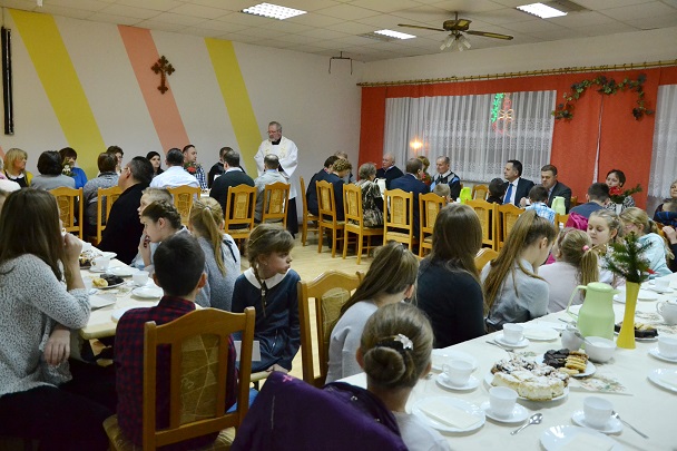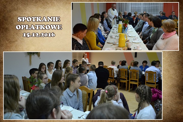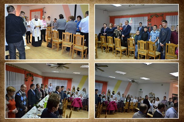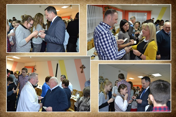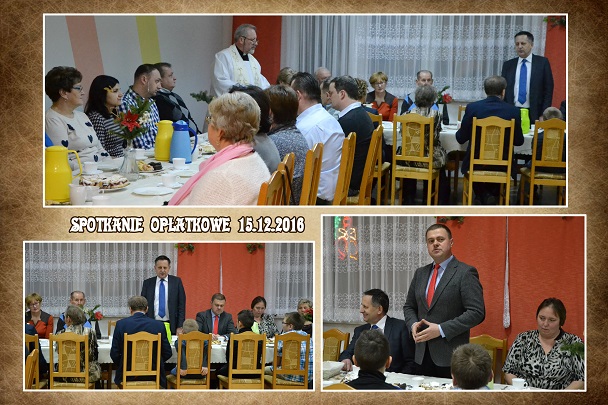 W bożonarodzeniowy nastrój wprowadziła nas wspólna modlitwa oraz słowa naszego Ks. Proboszcza, który podziękował wszystkim przybyłym m.in. Panu Wójtowi Krzysztofowi Obrzutowi, Panu Andrzejowi Frejno. Złożył też pełne życzenia z okazji nadchodzących świąt oraz Nowego Roku 2017. Wzruszał niepowtarzalny klimat. Ks. Proboszcz przemawiając do zebranych podkreślił, iż każde Boże Narodzenie powinno coś zmienić w naszym życiu, a jeżeli dążymy do dobra musimy umieć coś podarować, coś poświęcić.