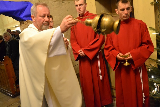 O północy w wielu kościołach na świecie odprawiane są pasterki - bardzo uroczyste msze święte na Boże Narodzenie. Pasterka ma na celu upamiętnienie modlitwy pasterzy z okolic Betlejem, którzy - na wezwanie aniołów jako pierwsi złożyli hołd Dzieciątku. W naszym kościele przy licznym udziale Parafian oraz Gości sprawowana była pod przewodnictwem Ks. Jana Palusa- proboszcza parafii, Pasterka, podczas której Ks. proboszcz w procesji wniósł uroczyście figurkę nowo narodzonego Jezusa i umieścił w żłóbku. Licznie zgromadzeni, w naszym kościele, wierni świętowali pamiątkę narodzenia Pana Jezusa w Betlejem. Podczas homilii ks. Jan poruszył tajemnicę Wcielenia, czyli przyjęcia przez Syna Bożego ludzkiej natury oraz Jego przyjścia na świat.