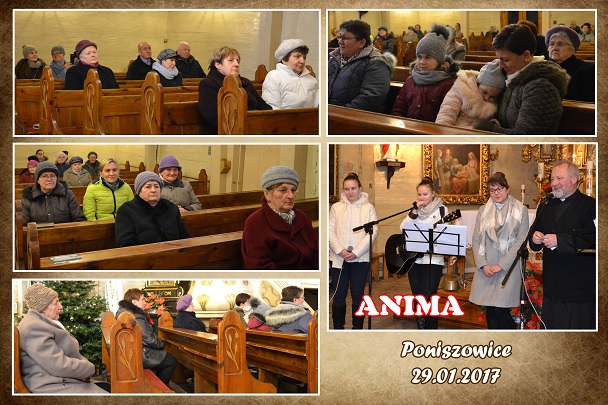 Klimat świąt Bożego Narodzenia powoli zanika. Jednak w polskiej tradycji możemy śmiało śpiewać kolędy do 2 lutego. Chcąc jeszcze zachować w pamięci ich niepowtarzalny urok, został zorganizowany w niedzielę 29 stycznia 2017 roku w naszym parafialnym kościele, koncert kolęd i pastorałek w wykonaniu parafialnego zespołu muzycznego ANIMA. Zespół po raz pierwszy wystąpił w nowym składzie: Anna Sklorz, Marta Stolorz, Daria Stolorz oraz ks. proboszcz Jan Palus. Zgromadzeni parafianie gromkimi oklaskami nagrodzili wykonawców kolęd i pastorałek, które zostały zaprezentowane.