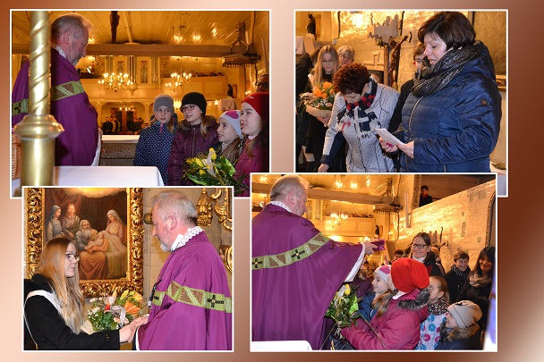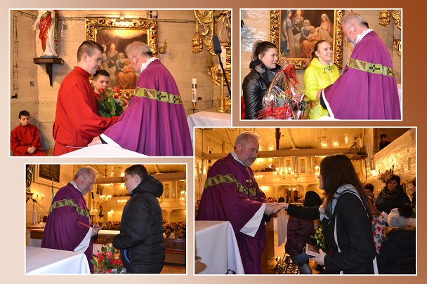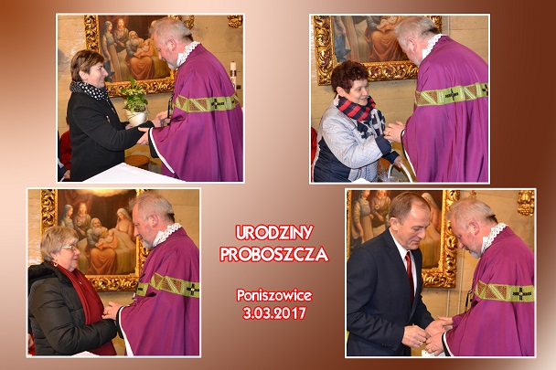 W piątek, 3 marca 2017r. o godz. 18.00 parafianie i goście uczestniczyli we Mszy Św., modląc się z podziękowaniem za odebrane łaski i z prośbą o błogosławieństwo Boże w dniu urodzin Ks. Proboszcza Jana Palusa. W tym dniu pamiętaliśmy o naszym Dostojnym Jubilacie i jak to zwykle bywa, po mszy przyszła kolej na życzenia i kwiaty składane przez reprezentantów różnych grup działających w naszej parafii. Ksiądz Jan podziękował serdecznie wszystkim przybyłym za udział we mszy św. i za modlitwę.
