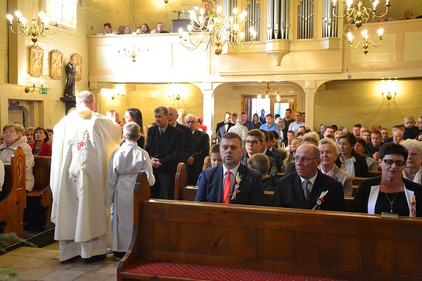 Konsekracja jest to Boża pieczęć, położona na budowli postawionej ogromnym wysiłkiem wielu ludzi dobrej woli, a która potwierdza na zawsze i wobec wszystkich, że jest to miejsce święte. Że jest to miejsce, które Pan Bóg szczególnie wybrał jako miejsce spotkania, przebaczenia, jako miejsce, gdzie niebo spotyka się z ziemią. Nasi przodkowie podjęli się tych wielu zmagań o to, by tu stanęła świątynia, a my pamiętajmy, że ta świątynia jest naszym domem, domem naszej Rodziny Parafialnej – korzystajmy z ciszy tego domu, korzystajmy z przestrzeni sakralnej i dbajmy o tę naszą świątynię pozostawioną nam przez naszych przodków. Trzeba nam dzisiaj pochylić czoło wobec naszych przodków, wobec ich wielkiej determinacji . Dziękujmy dziś Panu Bogu za ten kościół, w którym wiele naszych braci i sióstr przyjęło chrzest, komunię świętą i inne sakramenty. Dziękujmy, że jest dla nas znakiem obecności Pana Boga wśród nas. Tu gromadzimy się wokół ołtarza, aby budować wspólnotę parafialną.