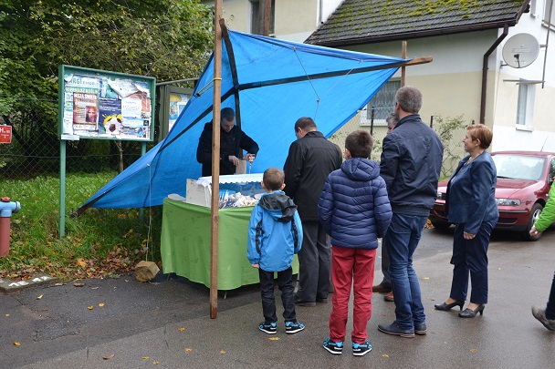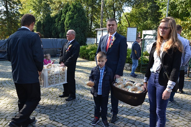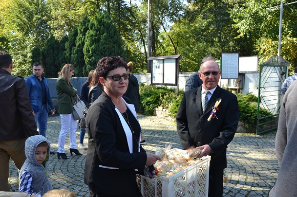 Po Mszy Świętej parafianie i goście przenieśli się na plac przed kościołem, aby zakosztować przepysznych bułek, przygotowanych przez gospodarzy dożynek.