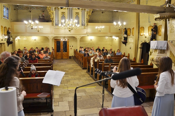 Dnia 22 października w naszym Kościele miało szczególne wydarzenie. Z okazji XVII Dnia Papieskiego odbył się koncert Zespołu ANIMA poświęcony pamięci Jana Pawła II. Zgromadzonych powitali ks. Jan Palus, proboszcz naszej poniszowickiej parafii. Zanim zespół wystąpił przed zgromadzoną publicznością odbyło się krótkie przypomnienie najważniejszych chwil z życia naszego Papieża Jana Pawła II. Piękne wykonanie utworów oraz archiwalne nagrania przemówień naszego papieża, wprawiło wszystkich w refleksyjny i radosny nastrój. Koncert z okazji XVII Dnia Papieskiego to eksplozja radości, śpiewu i wiary.