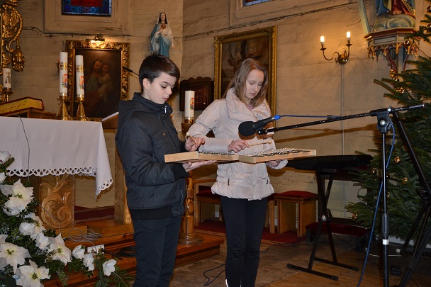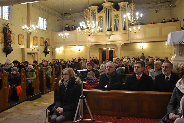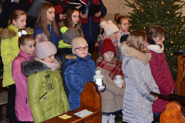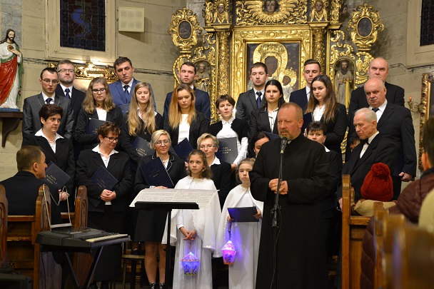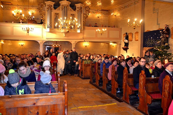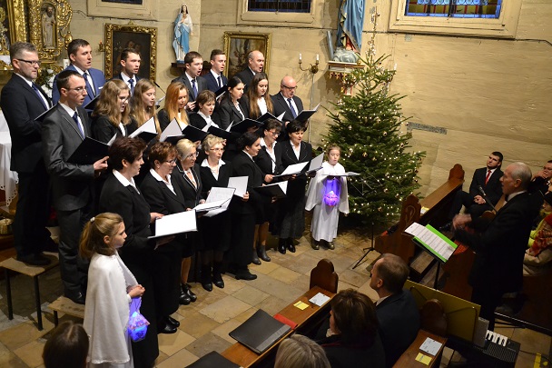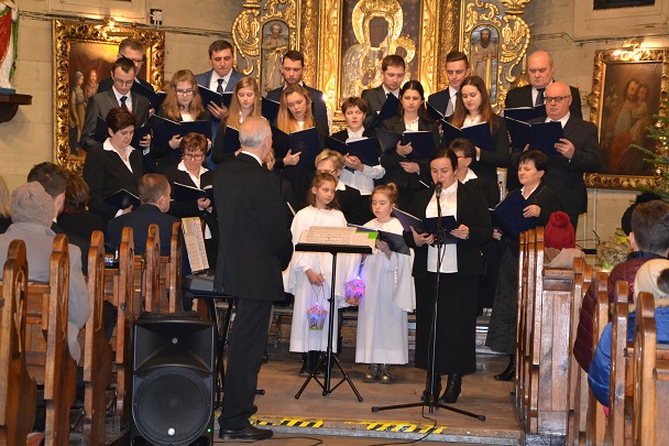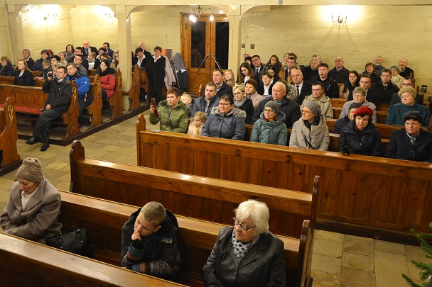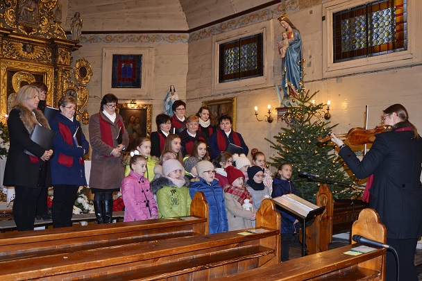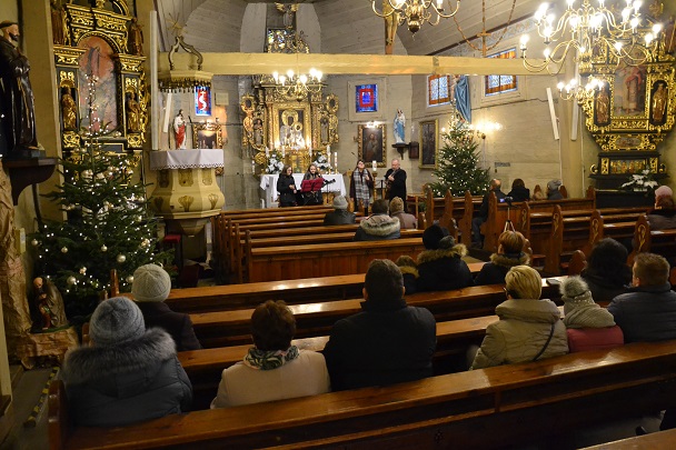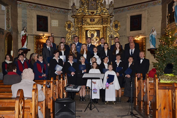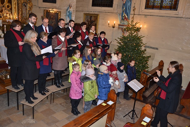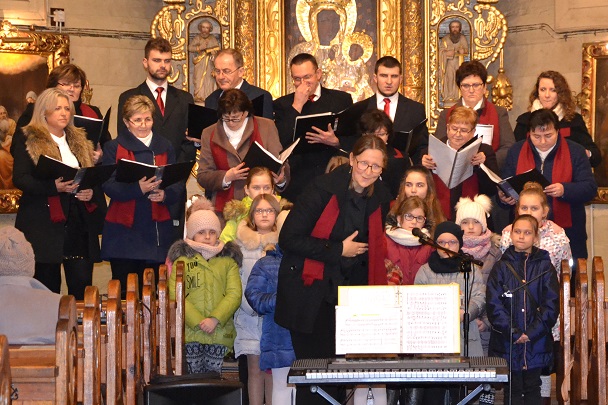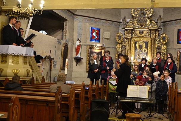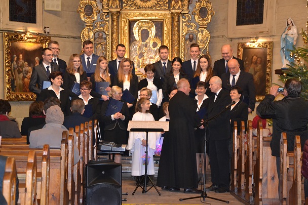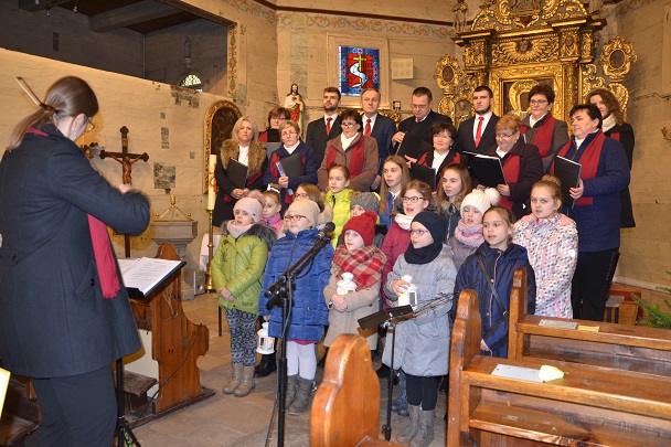 Kolędy rzeczywiście posiadają szczególną moc. Łączą pokolenia, rodziny, ludzi. Wystarczy tylko zaśpiewać, że Bóg się narodził, Bóg zstąpił na Ziemię i jest tu z każdym z nas. Znowu wstępuje w nas nadzieja, a Ci, którzy już odeszli znowu są z nami w naszych wspomnieniach. Kolędy mają niesamowitą moc, budzą w każdym z nas dziecko: znowu jest Wigilia, choinka, pasterka i śpiewanie kolęd w gronie rodzinnym i w kościele. Na krótką chwilę trwania tych kilkudziesięciu dźwięków znowu stajemy się dziećmi i z radością wpatrujemy się w świecącą gwiazdę i żłobek, w którym śpi Boża Dziecina. Nasz chór parafialny wraz ze Scholą pięknie wykonali zaprezentowane utwory. Natomiast organizatorzy koncertu przygotowali dla Parafian i Gości niespodziankę, a mianowicie gościnny występ Chóru „Cecylia” z Pniowa pod dyrekcją Pana Marcina Kwaśnioka. Niedzielne popołudnie zostało ubogacone o nietuzinkowe muzyczne wydarzenie, a usłyszane utwory pobudziły słuchaczy do dziękczynienia i uwielbienia Boga.