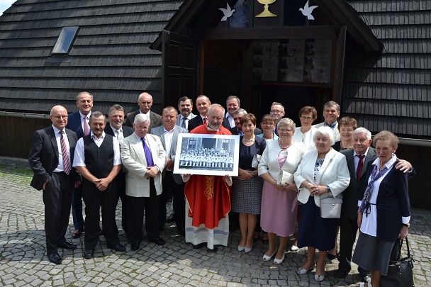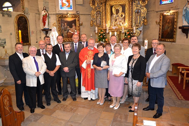 50 lat. Dla jednych mało, dla innych szmat czasu. I tak nadszedł dzień 20 maja 2018 roku i Msza św. o godz. 11.00. Wróciły wspomnienia sprzed 50 laty. Pięknie odprawiona Msza święta przez ks. Jana, wygłoszona homilia, nawiązująca do naszej pięknej rocznicy, trafiała prosto w serce. Była jakże aktualna, nie tylko dla nas jubilatów ale i dla wszystkich wiernych. Modlitwa dziękczynna i zarazem błagalna przeplatała się z modlitwą za zmarłych naszych kolegów, którzy z nami przyjęli Pierwszą Komunię świętą 50 lat temu, a także za kapłanów i nauczycieli – Panią Agnieszkę Macioszek, Państwa Emilię i Tadeusza Lipków. Po zakończonej Mszy świętej wspólne pamiątkowe zdjęcie. Nie było wszystkich, ale spotkaliśmy się z wielką radością.