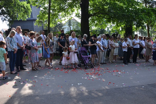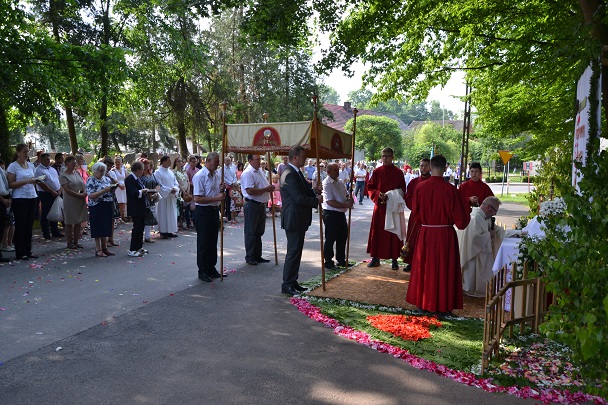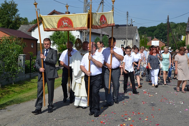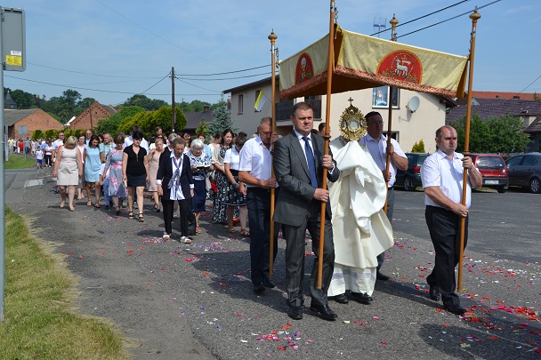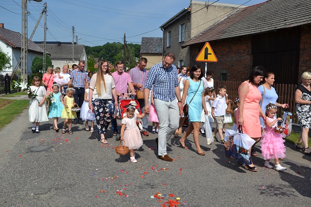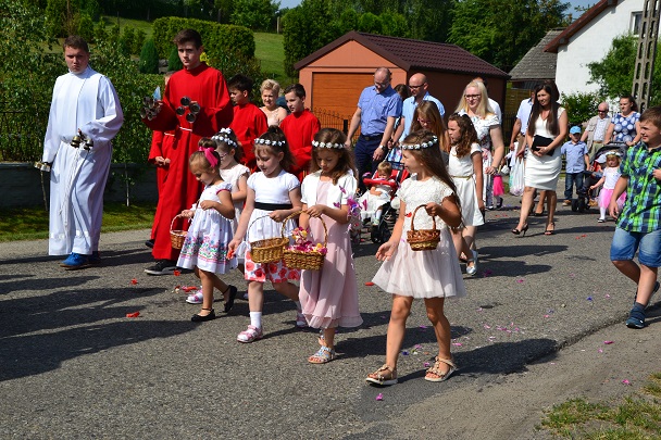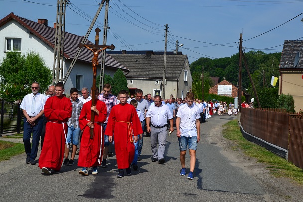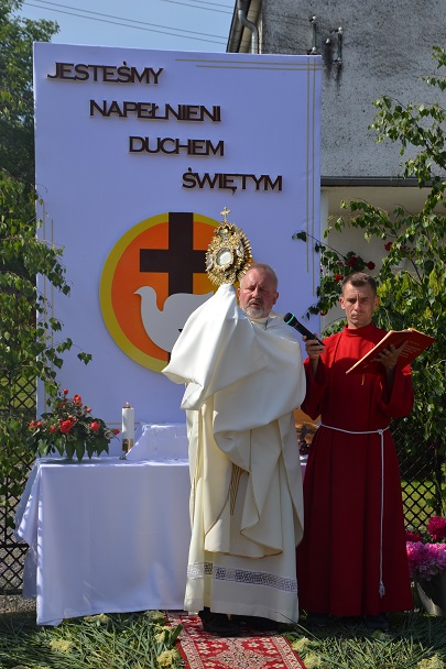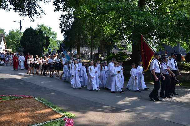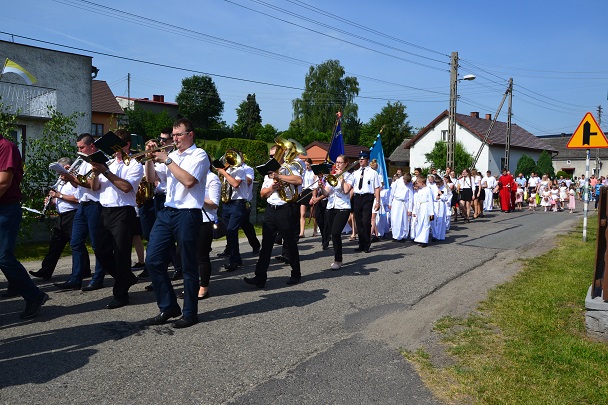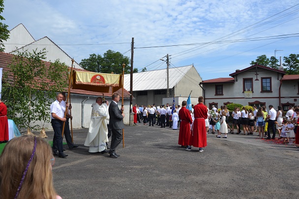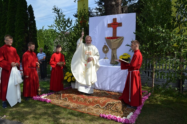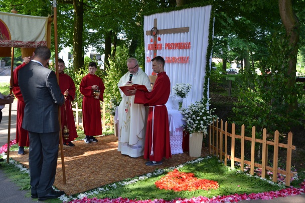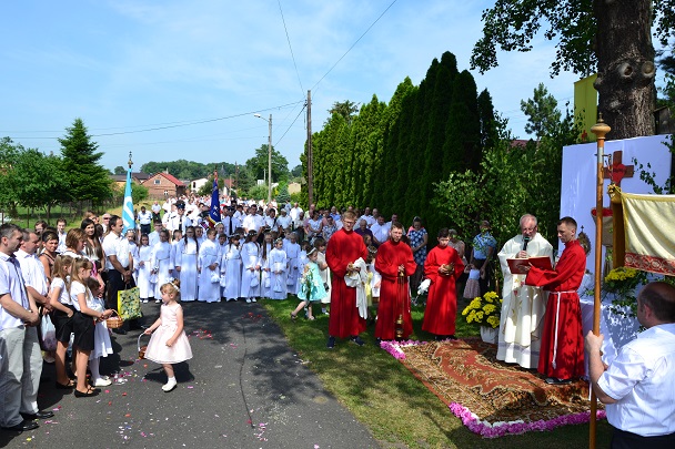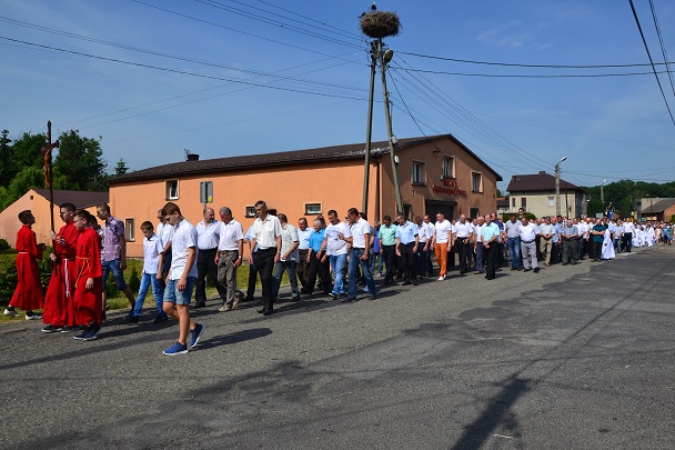 W czwartek 31 maja po zakończeniu Mszy św. o godz. 8.00 przeszliśmy do czterech ołtarzy, dziękując Jezusowi Chrystusowi za dar Eucharystii. W procesji zaakcentowała swój udział orkiestra, druhowie strażacy, służba liturgiczna, Dzieci Maryi, dzieci pierwszokomunijne i dzieci sypiące kwiaty. Na całej trasie procesji mieszkańcy przepięknie przystroili swoje domy.