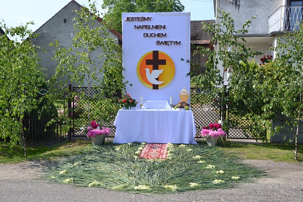Tradycją naszej Parafii jest procesja do czterech ołtarzy przygotowanych przez mieszkańców czterech z pięciu wiosek należących do parafii. W tym roku I ołtarz Poniszowice, ll ołtarz Niekarmia, lll ołtarz Widów i IV ołtarz Słupsko.