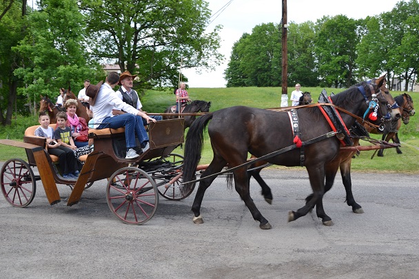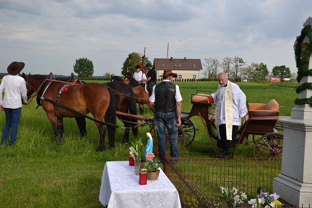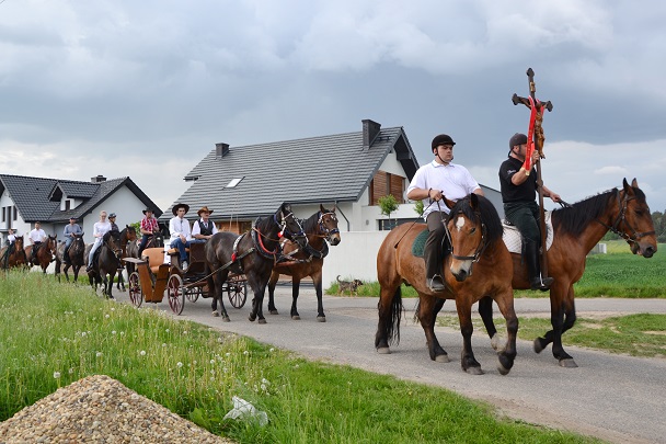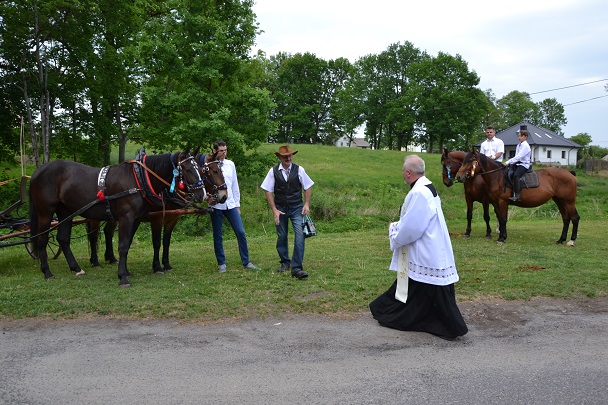W czasie środowej procesji, której przewodniczy ks. proboszcz ,już od kilku lat wiernym towarzyszą konie.