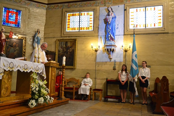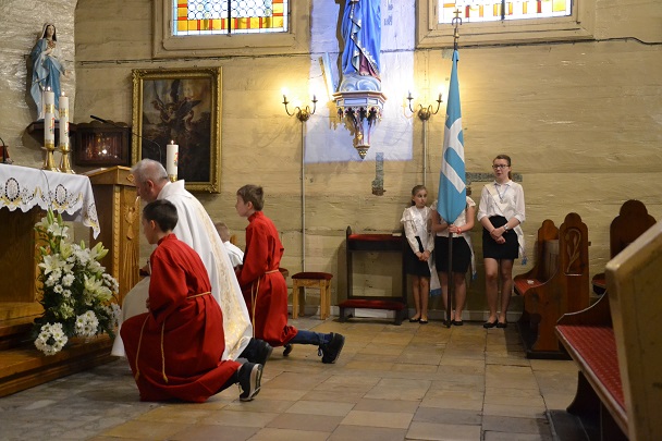 O godzinie 16:00 dzieci spotkały się w kościele na Nabożeństwie majowym, podczas którego otrzymały pamiątkowe obrazki i zrobiły sobie pamiątkowe zdjęcia.