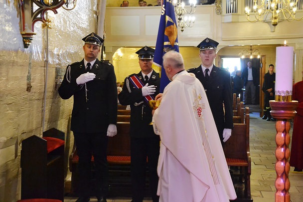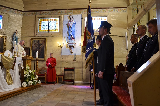 Uroczystą Mszę św. o godz. 9.00 odprawił ks. proboszcz Jan Palus, który modlił się w intencji żyjących i zmarłych Strażaków oraz ich rodzin. Na koniec ksiądz udzielił uroczystego błogosławieństwa i życzył druhom wytrwałości w dalszej strażackiej służbie.